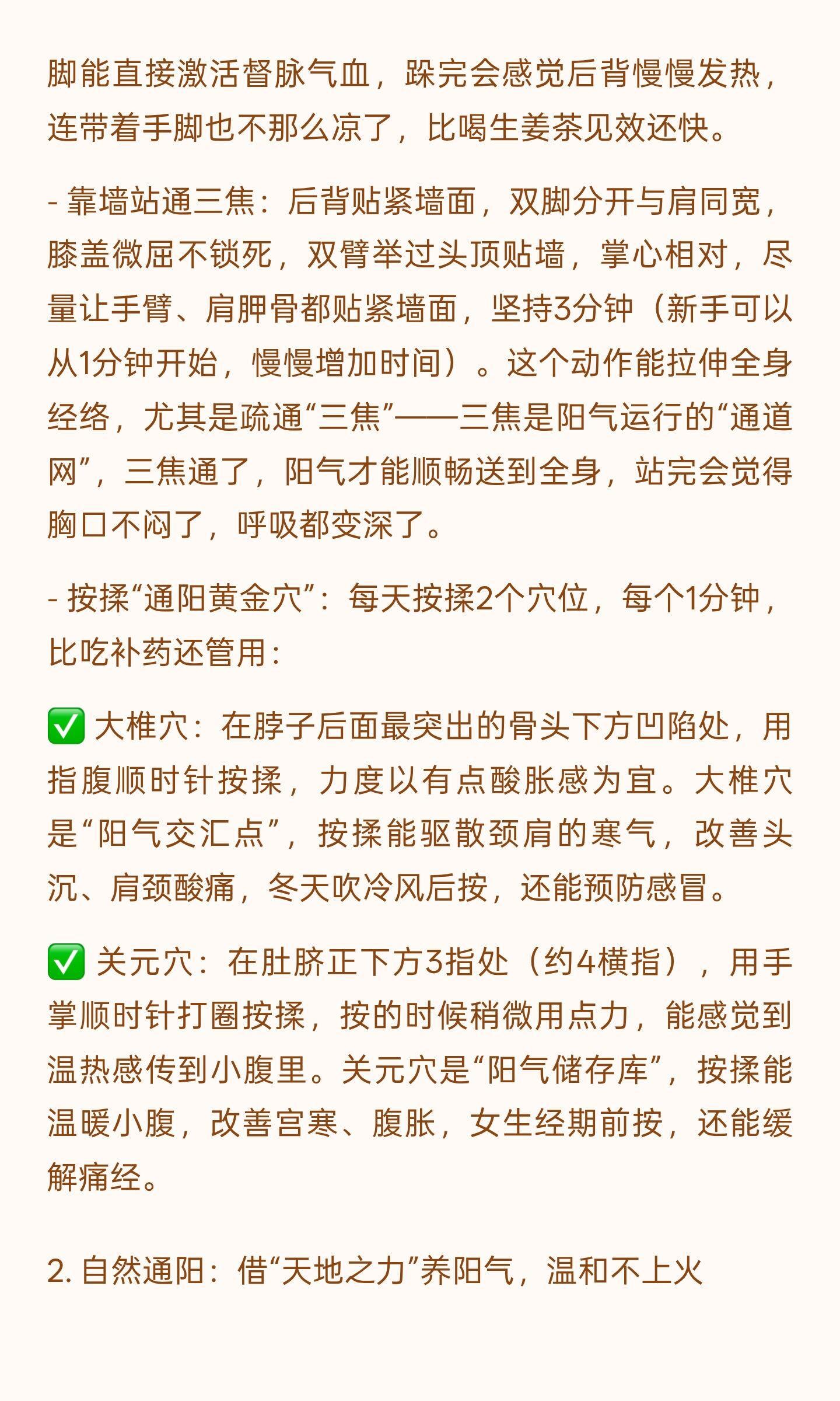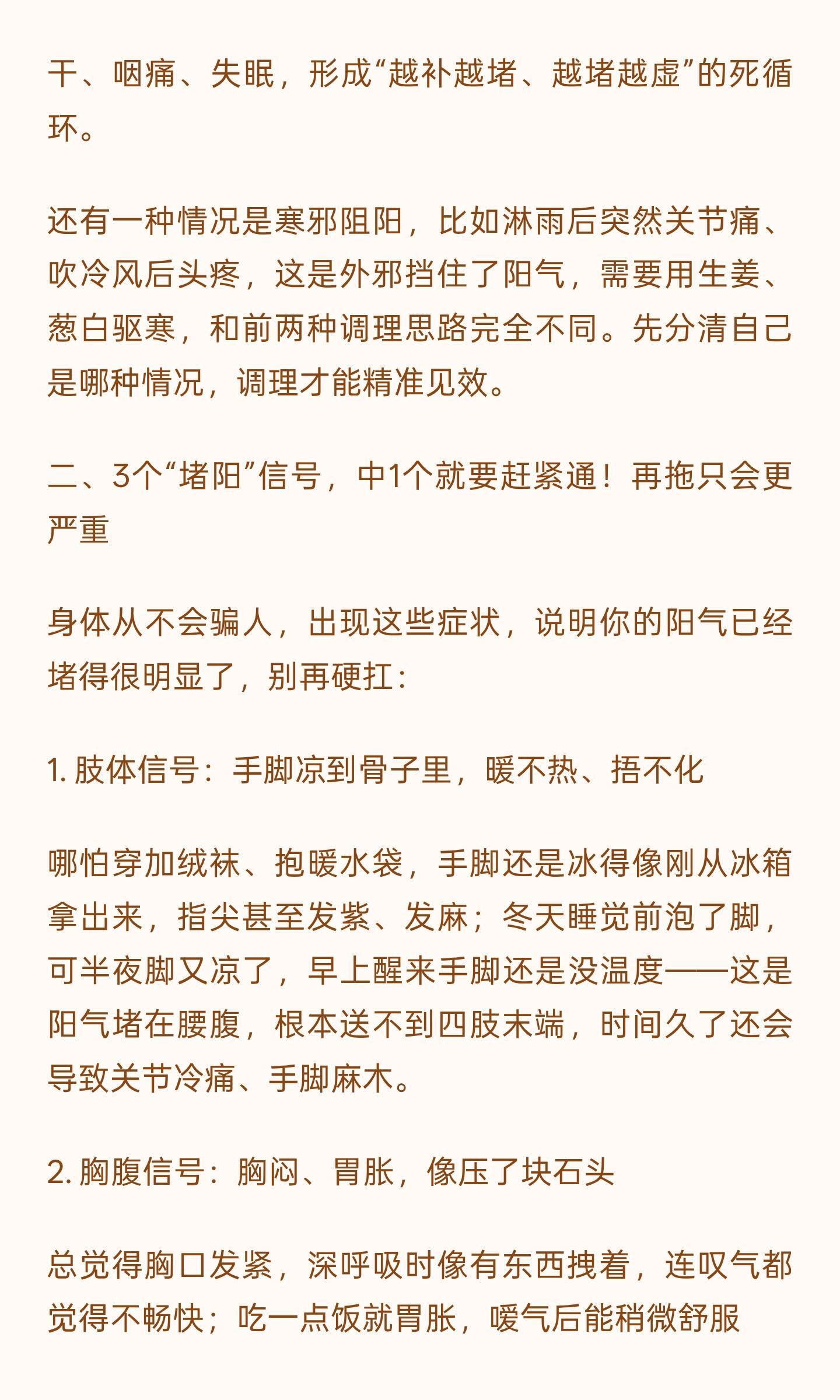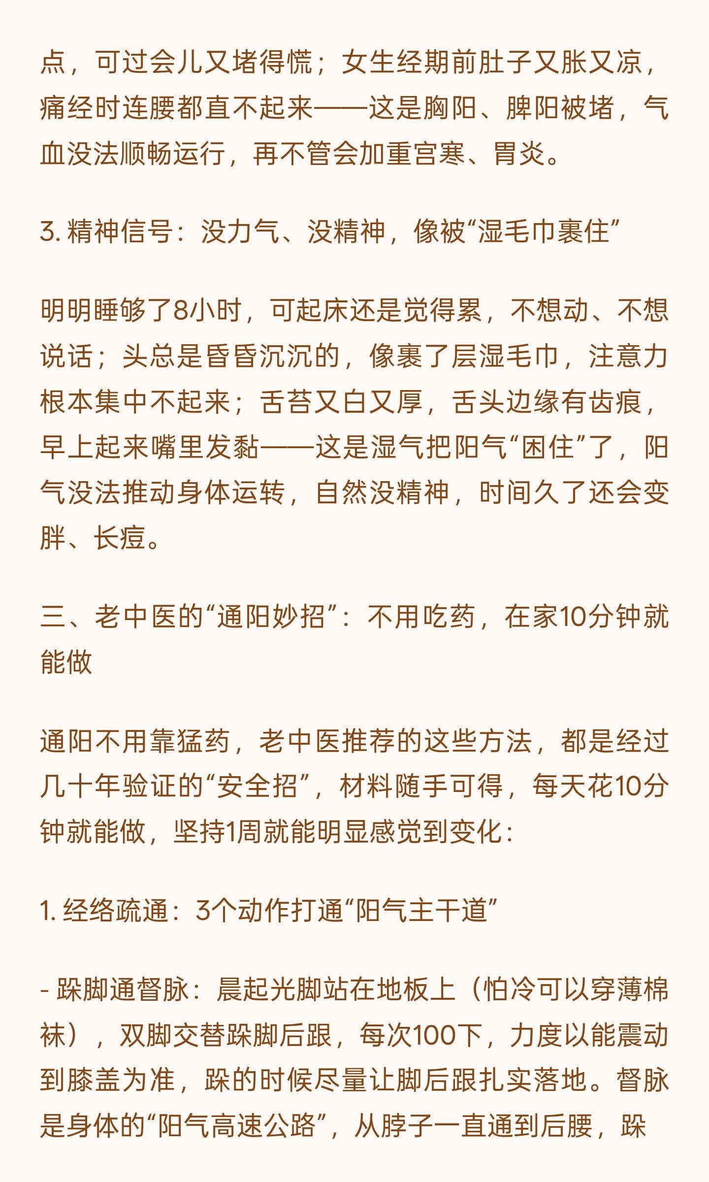 90岁老中医私藏:补阳100次,不如通阳1次!手脚冰凉、胸闷气滞是阳气被堵的表现,盲目补阳会适得其反。通过经络疏通、自然通阳和调整生活习惯,1周内可改善症状。先通后补,循序渐进,避免贪快求猛。健康养生