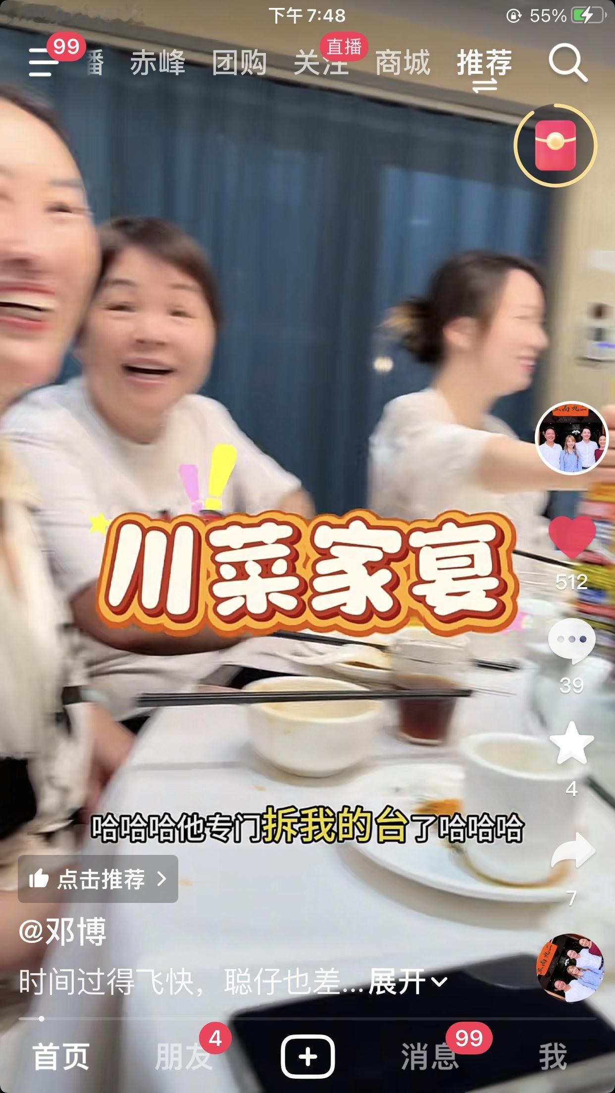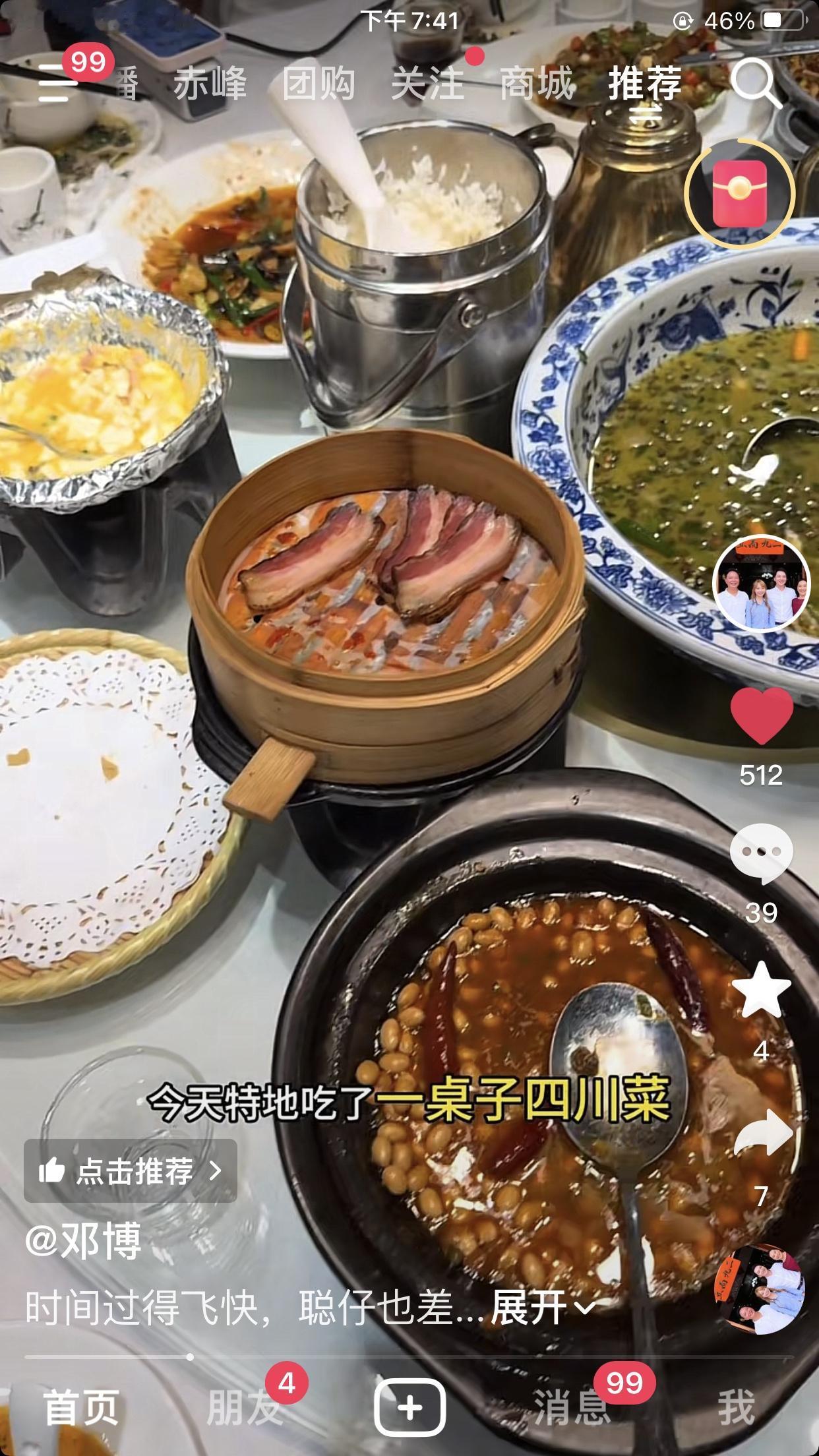 大喇叭东姑今天挺忙,上午给儿子办身份证,还给发财弟送了锦旗,还忙着换了两次抖音名。这会又和邓博一家吃饭。 博仔专门安排了川菜,照顾聪宝的味蕾。 去年博哥回来连吃一个月,今年聪宝回来又连吃一个月,不管吃什么,这一声声的嘻嘻哈哈太有代入感了,开心[耶] 这是不是也是为东姐和聪宝饯行,因为明天他们就出发回四川了。
