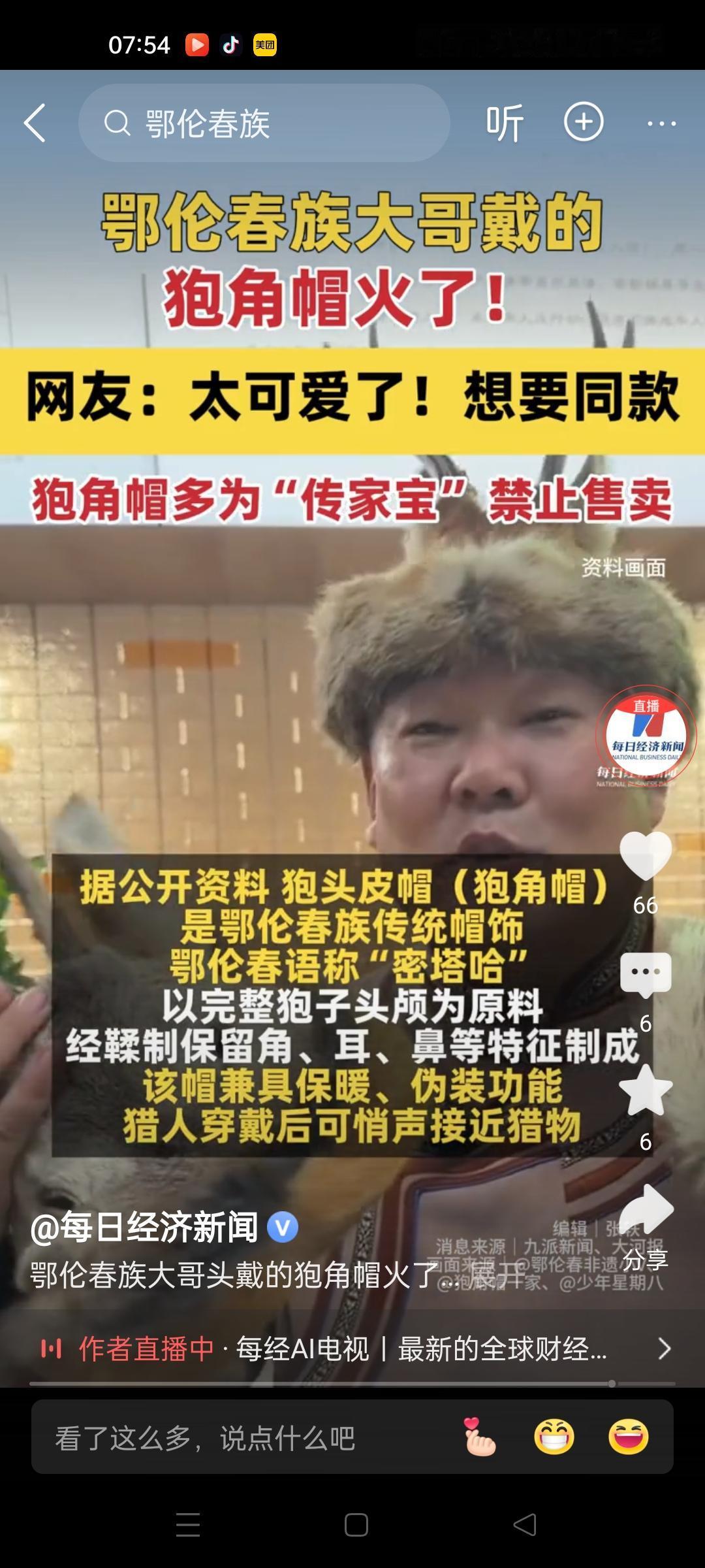 你所有的帽子都比不上这顶孢角帽! 鄂伦春族的孢角帽太好看啦!不过我们想买买不到,都是别人的传家宝了。 因为现在禁止狩猎,无法捕兽制作新的,现有的也不准售卖。 以前鄂伦春族猎人戴这帽子是为了伪装接近猎物狩猎,现在只能作为观赏品啦!已入选国家非物质文化遗产名录! 你觉得好看吗?