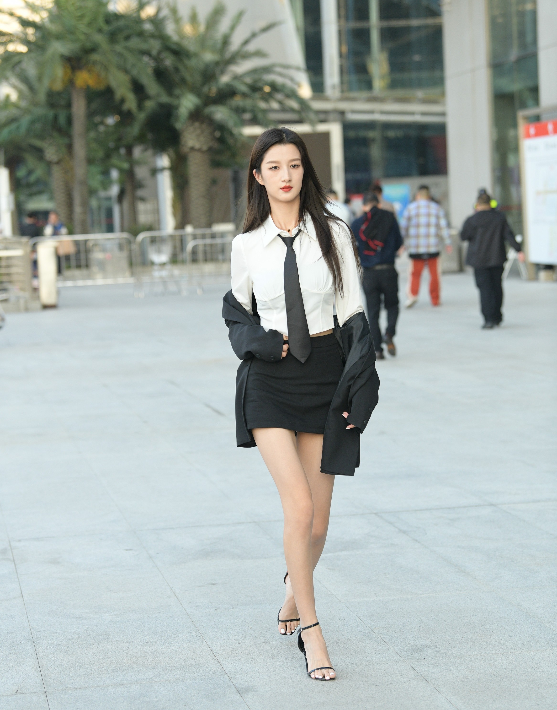 看到小姐姐这组穿搭,是不是瞬间被她的职场辣妹风所吸引?白色短款衬衫,搭配黑色领带,干练中透露出丝丝性感。黑色短裙与高跟凉鞋的组合,更是将她的修长美腿展现得淋漓尽致。 手中的黑色西装外套,随风飘动,仿佛在诉说着职场女性的自由与独立。这样的穿搭,不仅适合职场,更是街拍、约会的绝佳选择! 精致的妆容,自信的步伐,小姐姐用她的时尚品味,诠释了什么叫做“霸道女总裁”的魅力。姐妹们,还等什么?赶紧学起来,让你的职场穿搭也能成为焦点!