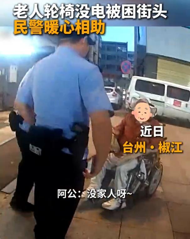 【老人街头轮椅没电台州警民暖心相助 】为靠谱的台州警民点赞!