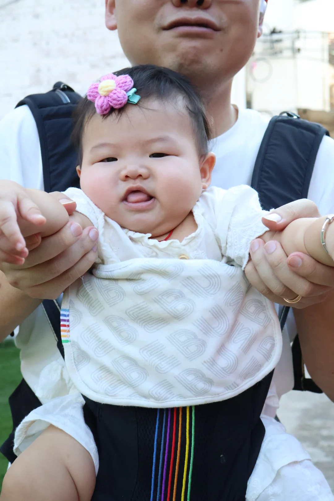 带7月龄崽出去见见世面 爸爸全程身上挂着小物件 宝宝虽然热但是却很开心