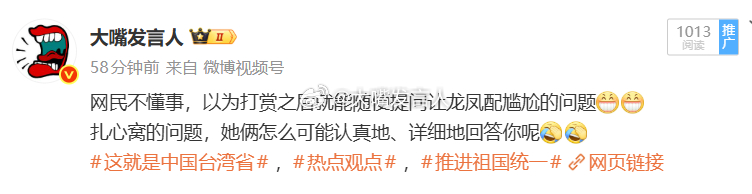 打赏的网民问了龙凤配一个让她俩尴尬的问题,