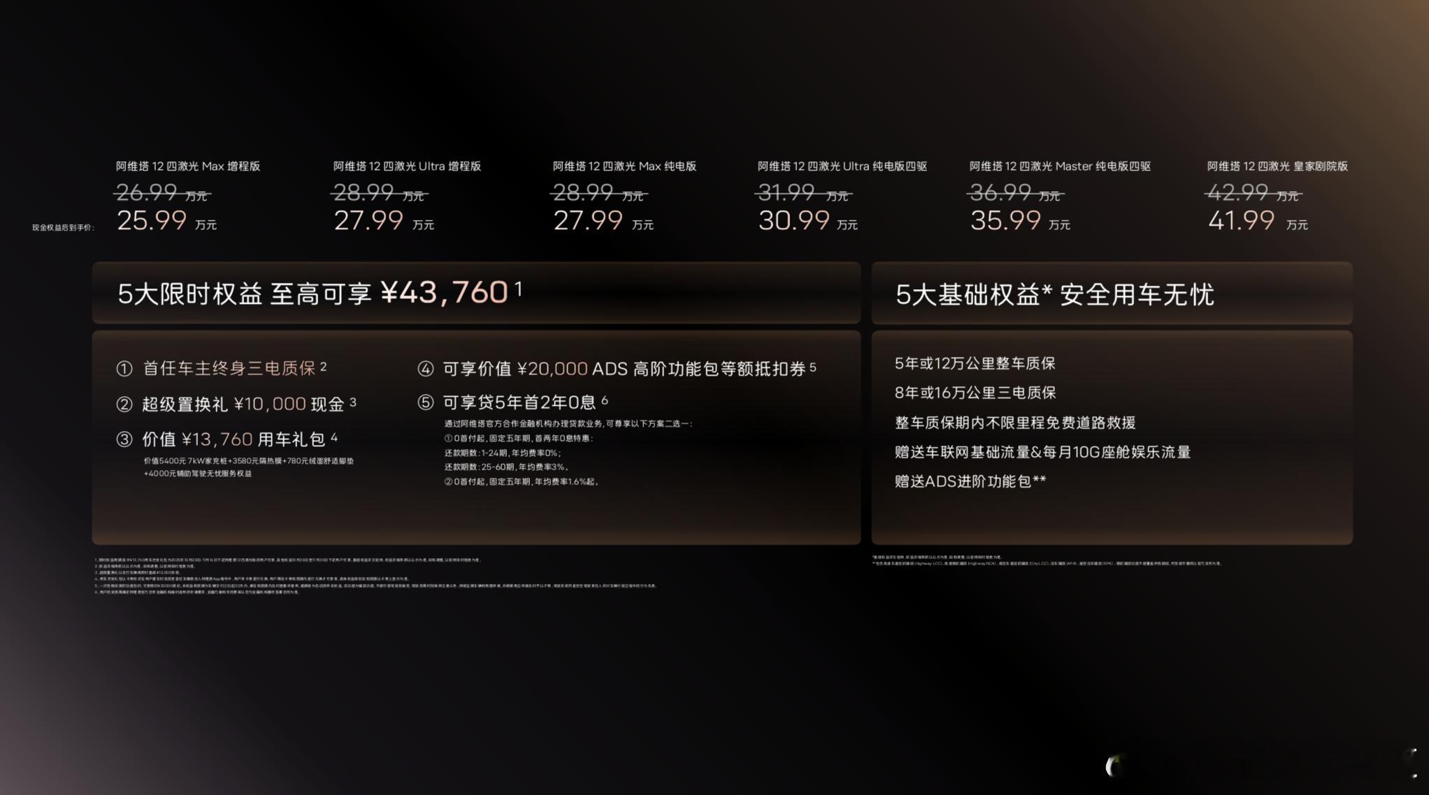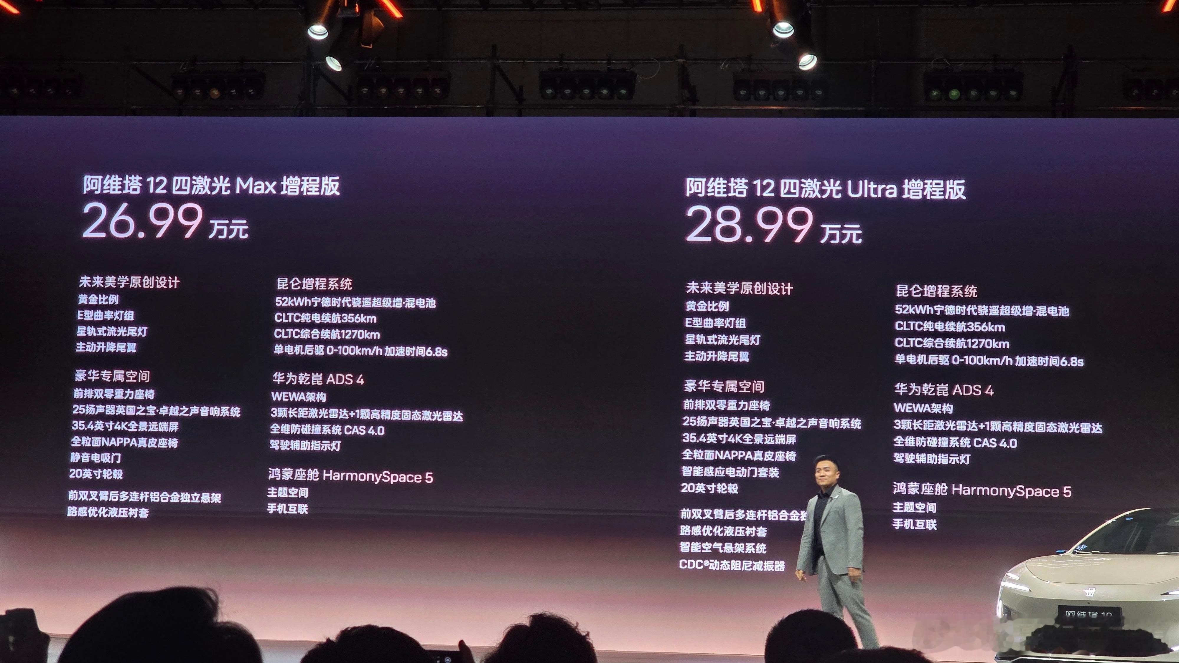 胖哥汽车频道[超话]阿维塔12四激光版上市 增程版起售价26.99万元,纯电版起售价28.99万元。阿维塔12十二项同级独享