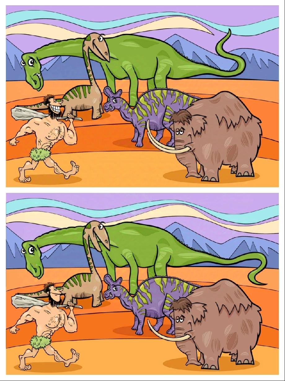 这恐龙找不同太狠了!2张图藏3处差异,我瞪了10分钟只找着1处,你能全揪出?