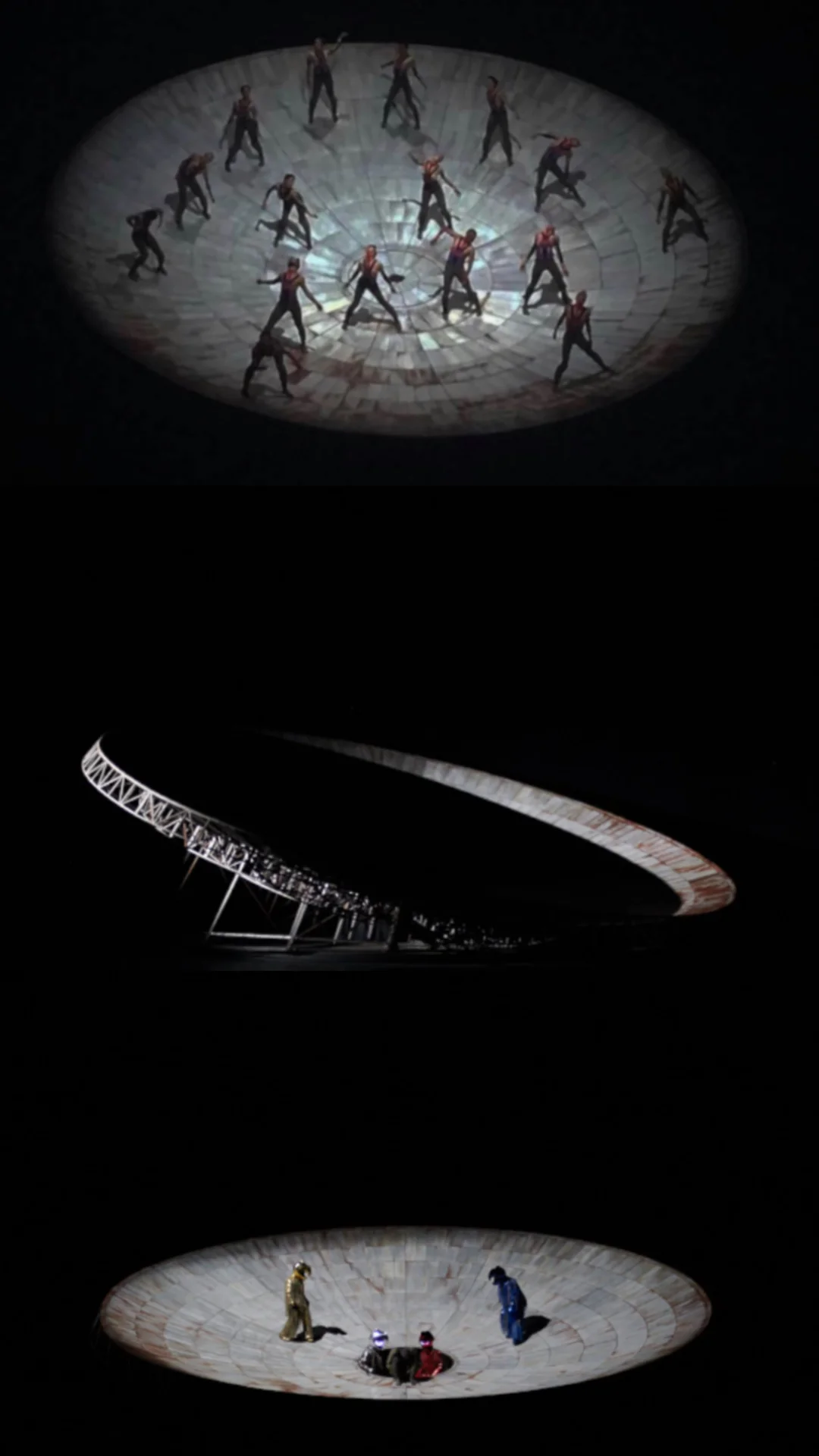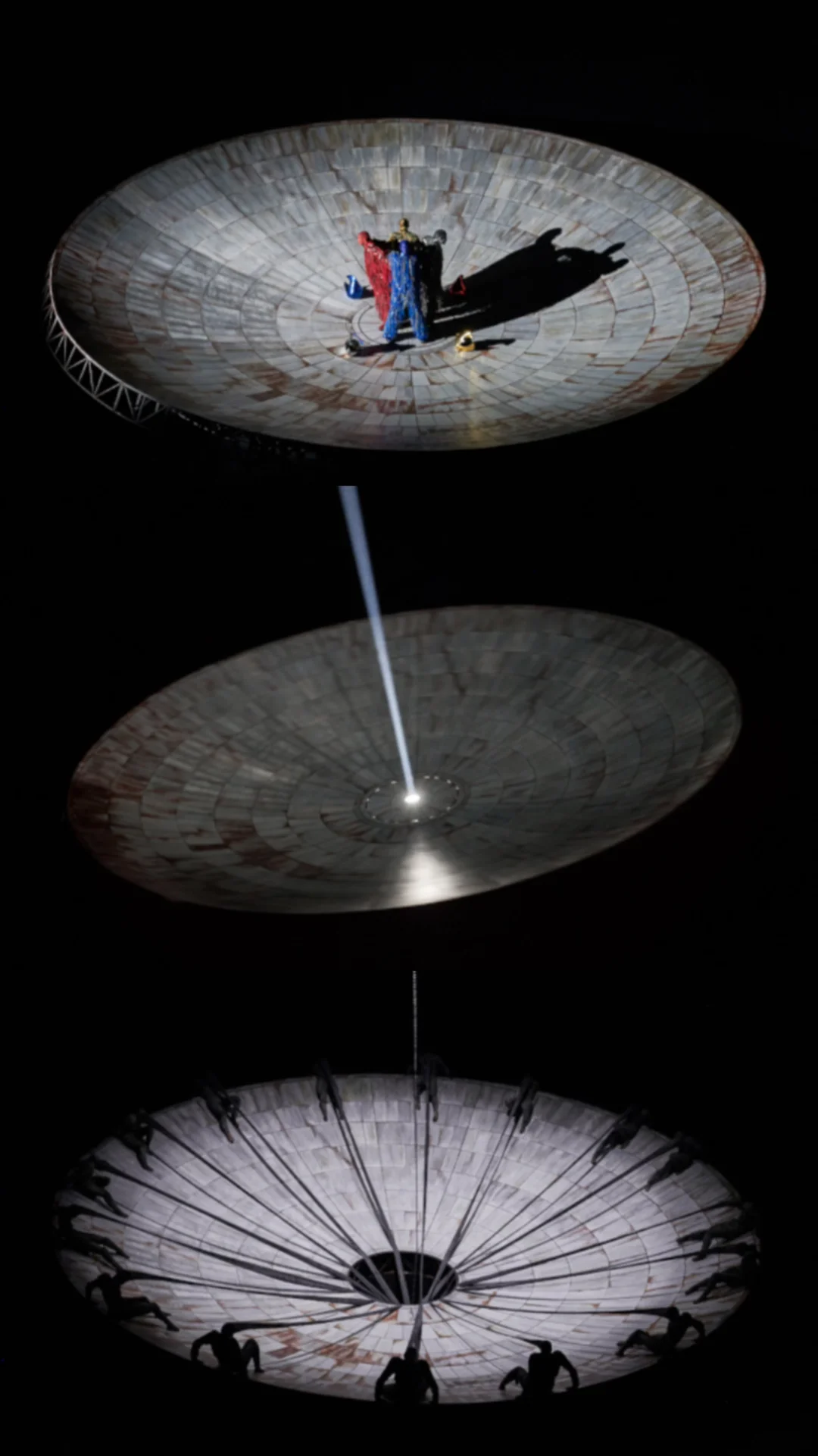 舞台造型是一个锅型岩石质感的“世界肚脐”