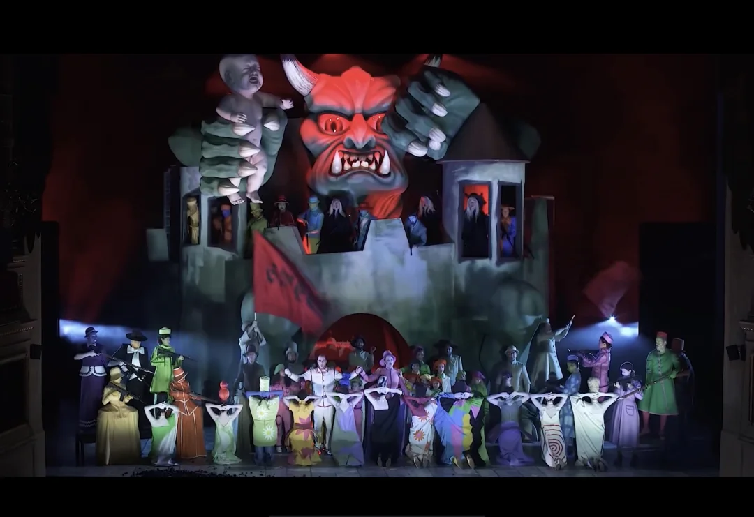 每秒都值得记录 笔记灵感 舞台设计 戏剧影视美术设计 设计案例分享 设计 戏剧 舞美 舞蹈 音乐 服装设计 《根特之歌》(Der Schmied Von Gent)是作曲家朗茨·施雷克尔(Franz Schreker)创作的一部歌剧,讲述了一个铁匠的故事。铁匠因遭到诽谤而穷困潦倒,便与魔鬼订立了契约以摆脱诽谤,并换取了七年的平静时光。当七年过后,铁匠智胜了魔鬼,想要前往天堂,但天堂却把铁匠赶了出来。 埃尔萨·蒙塔克说,“我要创造一种不真实的情境,它既远离现实,又指向现实。”《根特之歌》