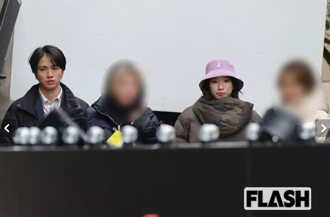 张天爱跟素人合影,胯真的好宽,大宅院似的