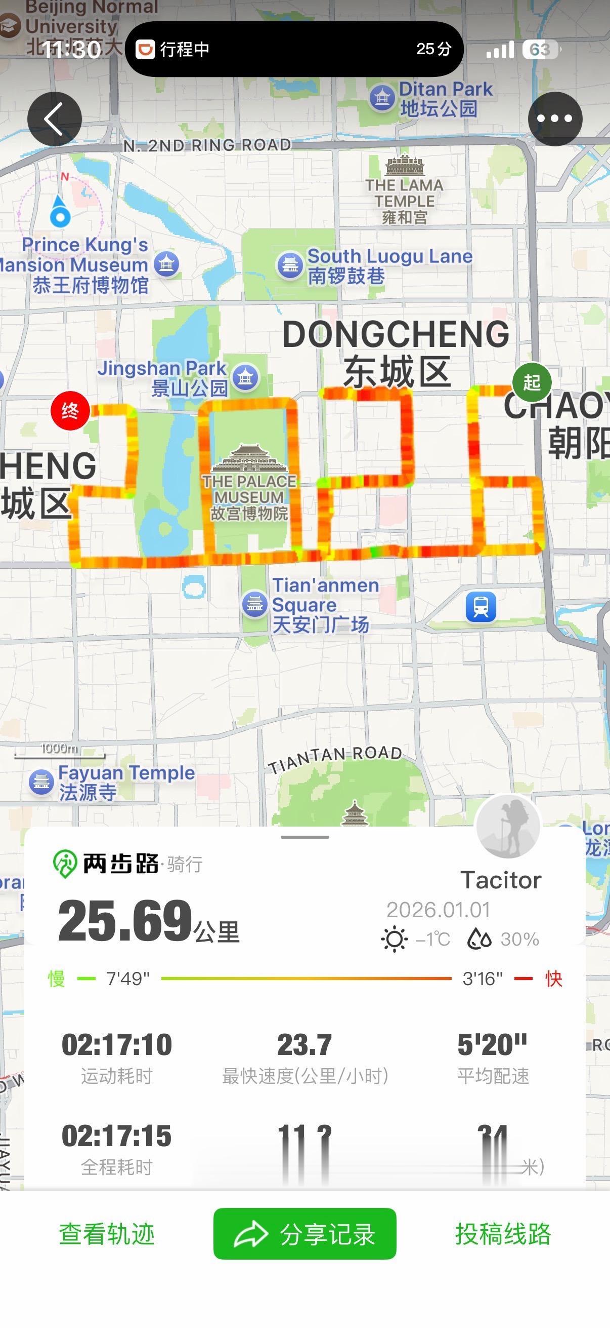 2026,越来越好。 2026年的第一天,骑行25公里,给自己一个好的开头。