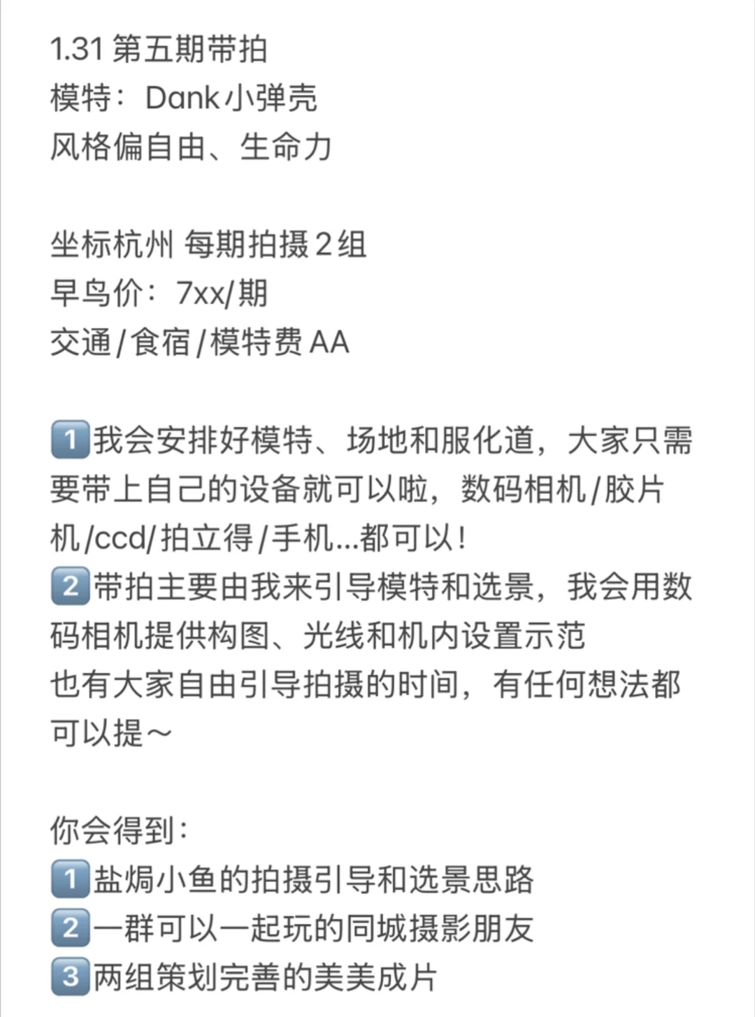 一月底准备在杭州开一日带拍 之后应该没有啦 只会开多日的面授 如果想体验一下我的拍摄过程 喜欢我的风格 欢迎一起玩!!! 模特是非常可爱的喜欢日系生命力的别错过[完啦R]
