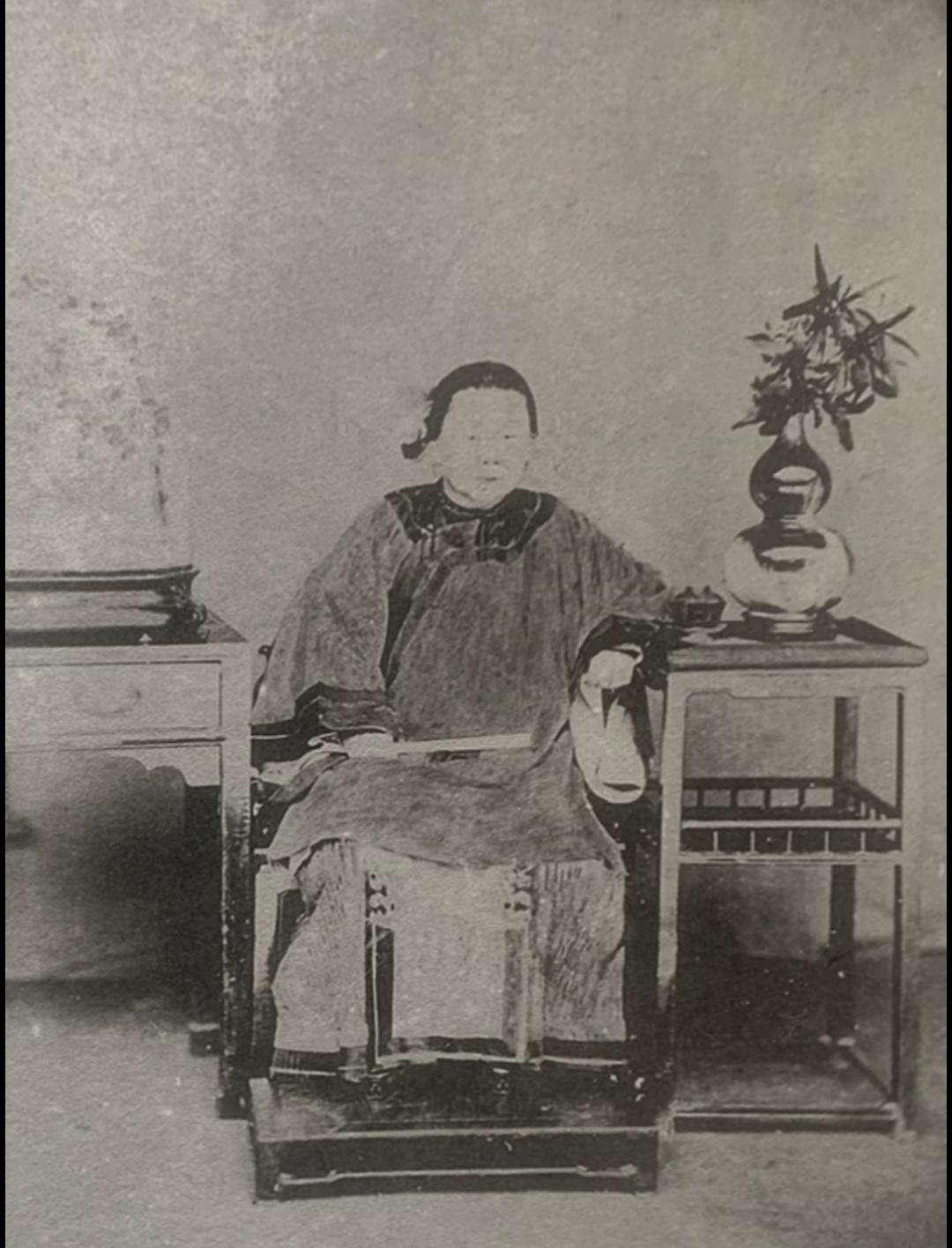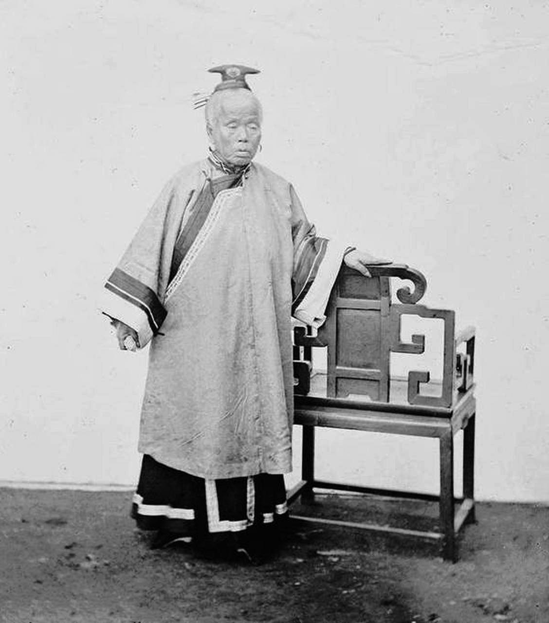 清末重臣李鸿章母亲影像。李鸿章的母亲也姓李,原是贫民李鸿谟的女儿,因生天花,家中又无钱医治,被狠心抛弃。