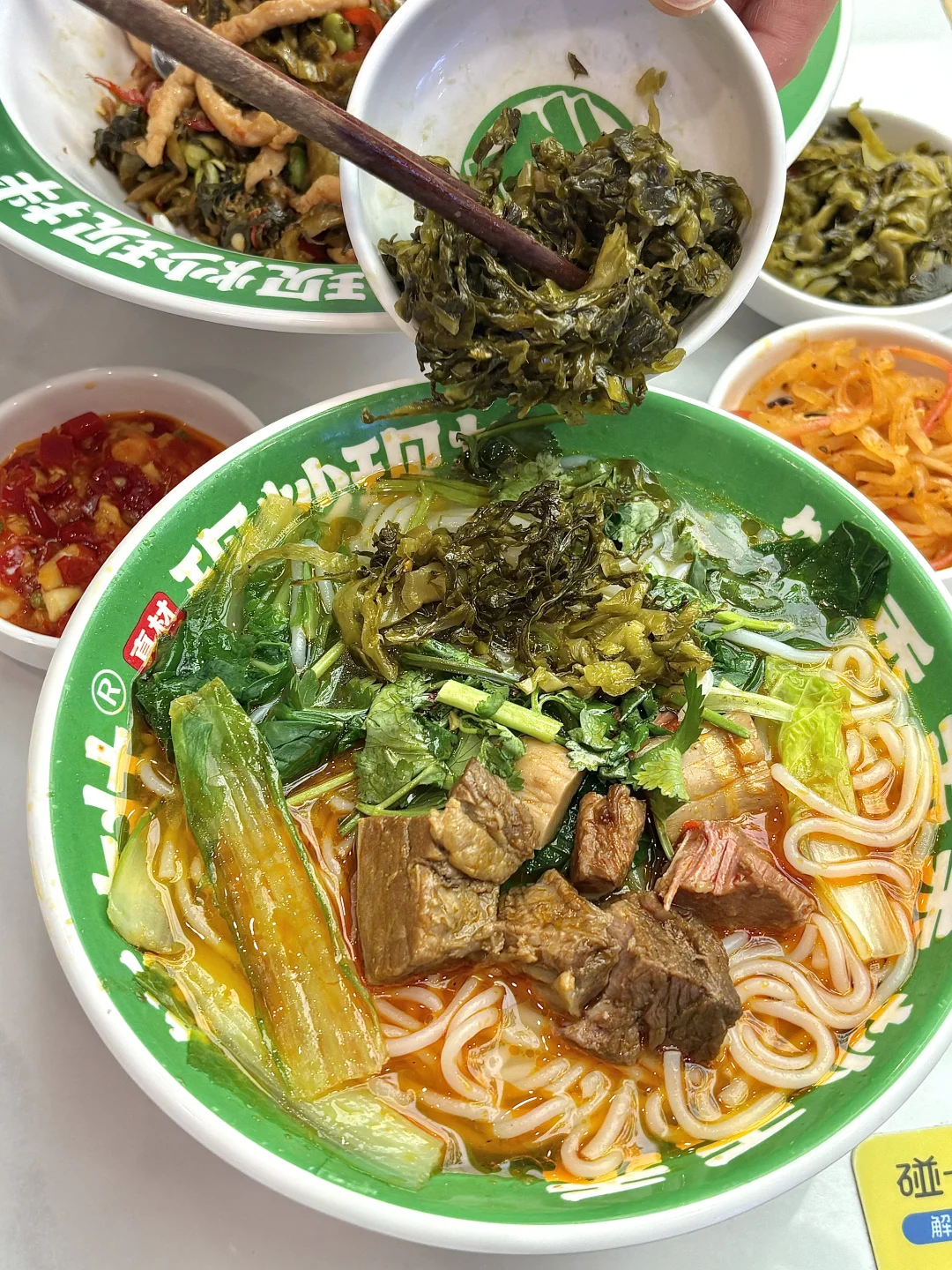 专为这一口锅气而来!!门店绿白主调清新明亮,进门瞬间放松~ 老板推荐的招牌百香果牛肉米线, 本来以为很“黑暗“!吃了一口真的有被惊艳到!! 百香果很清香,我额外再加了点酸菜更酸爽啦! 牛肉大坨很扎实,一口下去特别满足! 米线爽滑裹满汤汁,敲级入味,嗦一口就停不下来!! 酸菜肉丝盖饭也敲下饭!!强烈推荐! 锅气十足的现炒肉丝 搭配着恰到好处的酸辣口味,米饭瞬间见底!! 饭大壮,值得专门跑一趟!