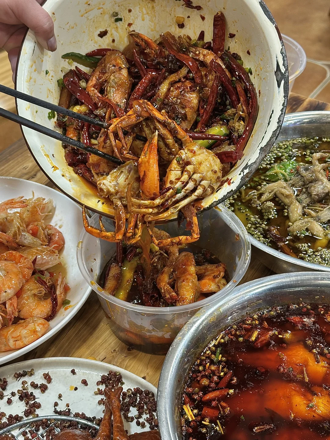 社区里的烟火小店太对味!就在伊藤商圈旁,逛累了冲敲方便~ 虾蟹都是现捞现称现杀,明档爆炒锅气直冲天灵盖,拒绝预制菜,每盘端上桌都滋滋冒油!香辣虾蟹鲜辣够劲,蛋黄肉松款咸甜翻砂,酸甜酥皮虾连壳都香,花胶乳鸽皮脆肉嫩会爆汁~ 悄悄说,堂食麻辣螺蛳还能免费续,嗦到停不下来!