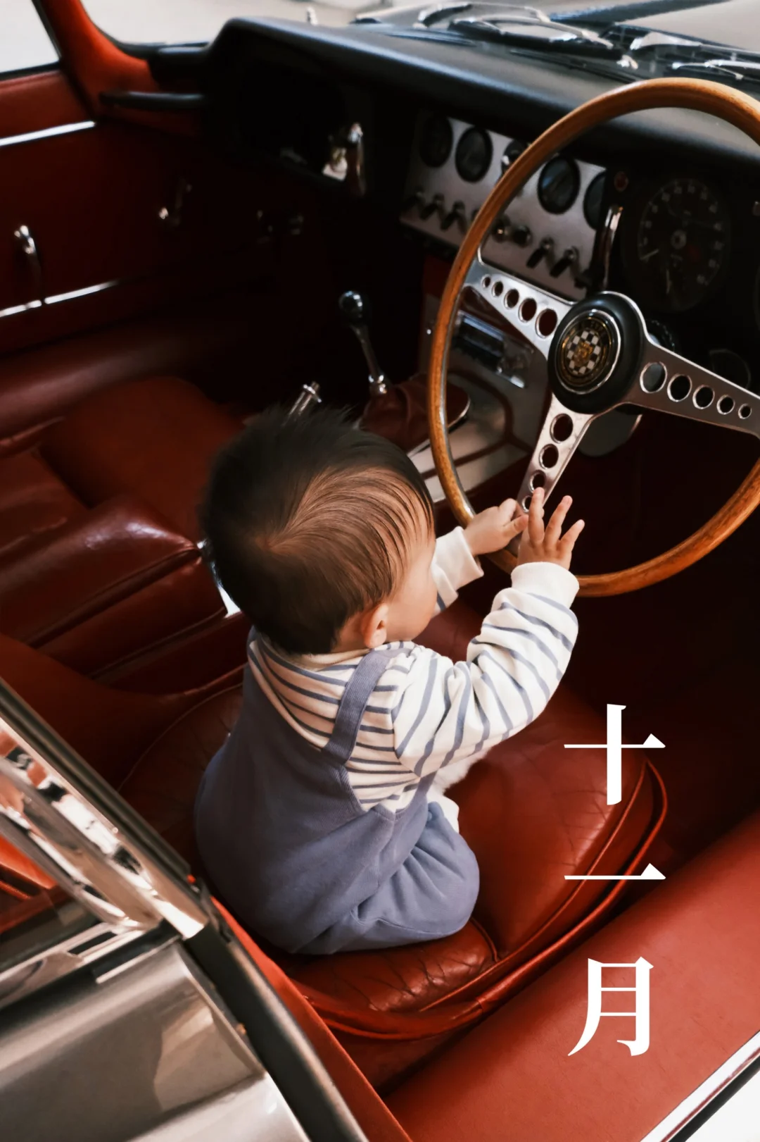 十一月龄,坐和站都很稳了,随时可以出发! 小手扶着捷豹E-type的方向盘,一下子就站了起来——果然,好的”辅助玩具”最值得。