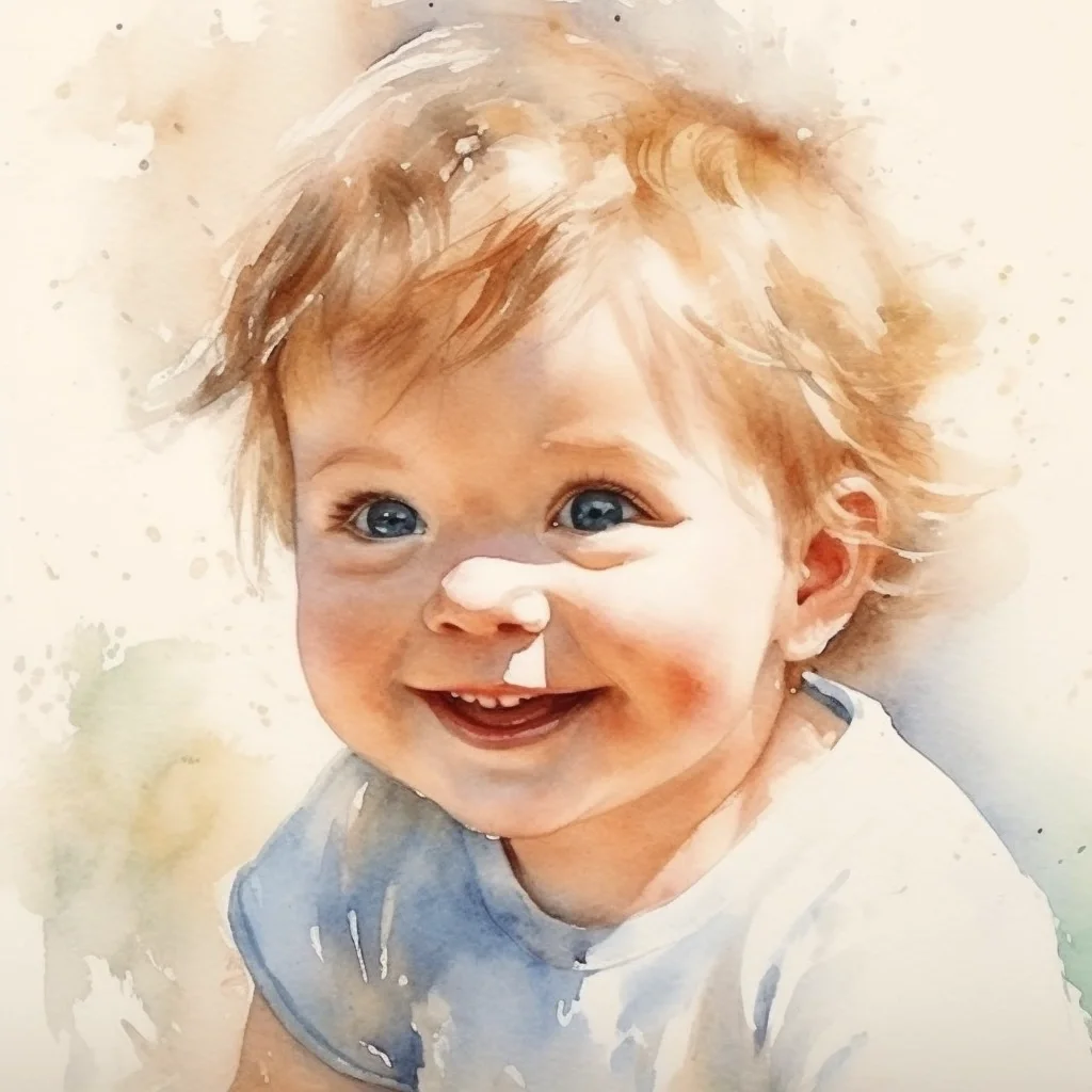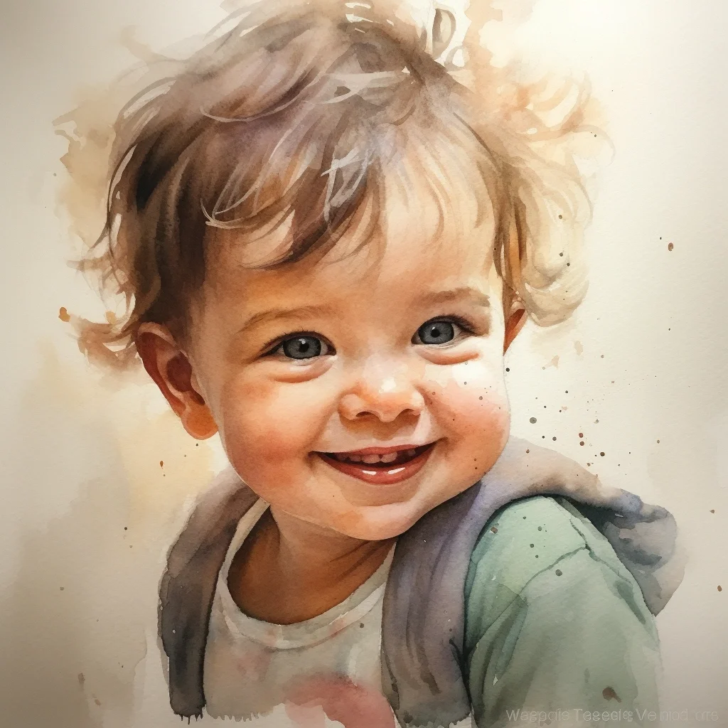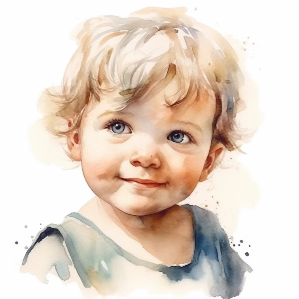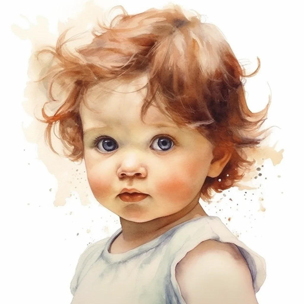 水彩人物 水彩画 水彩 AI 小孩 婴儿