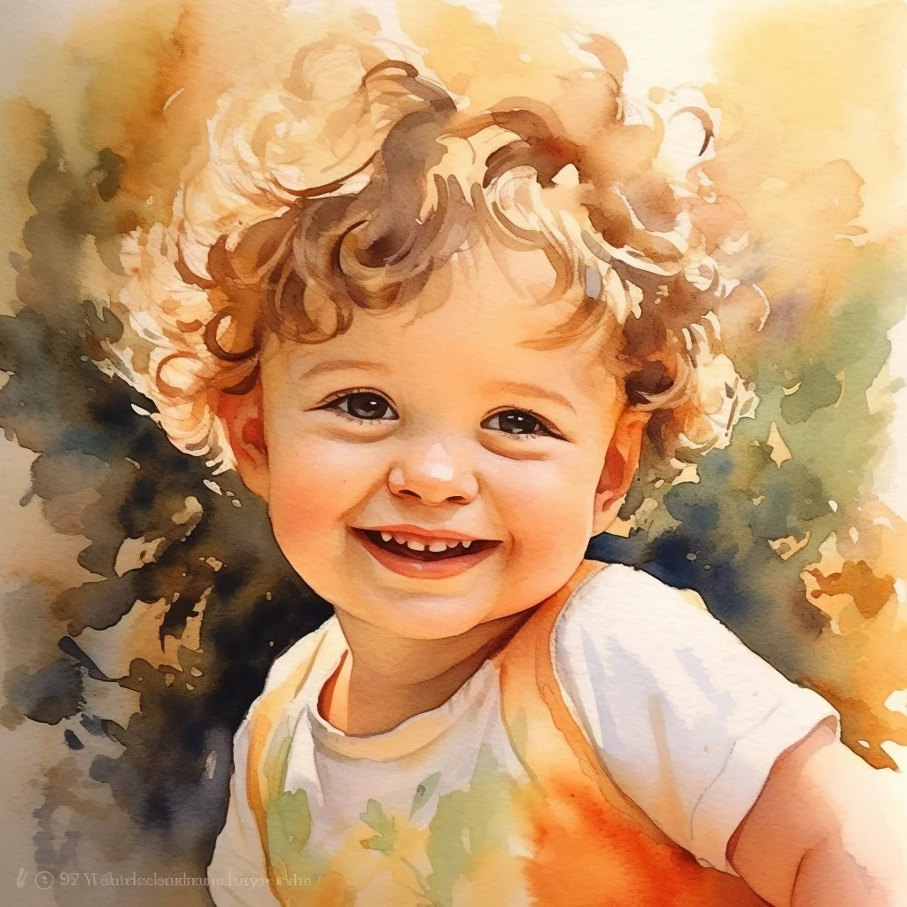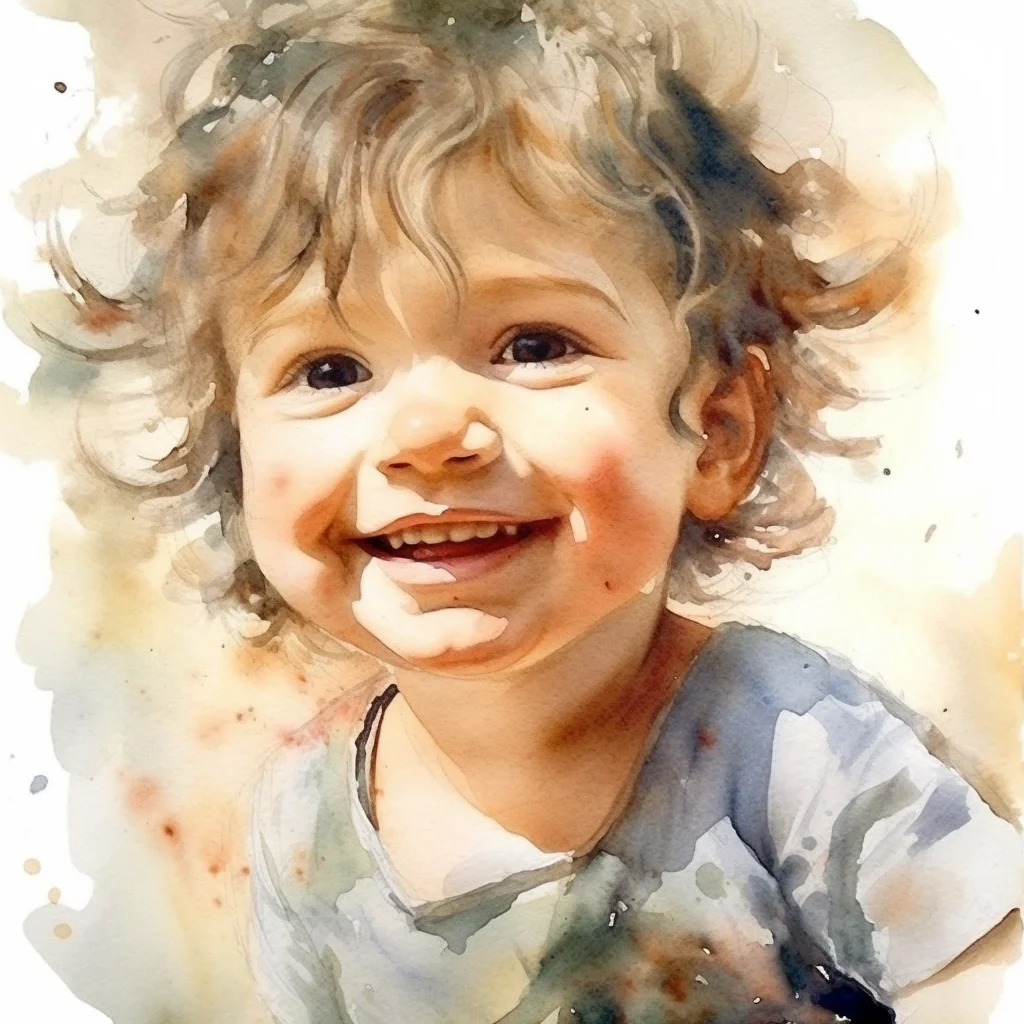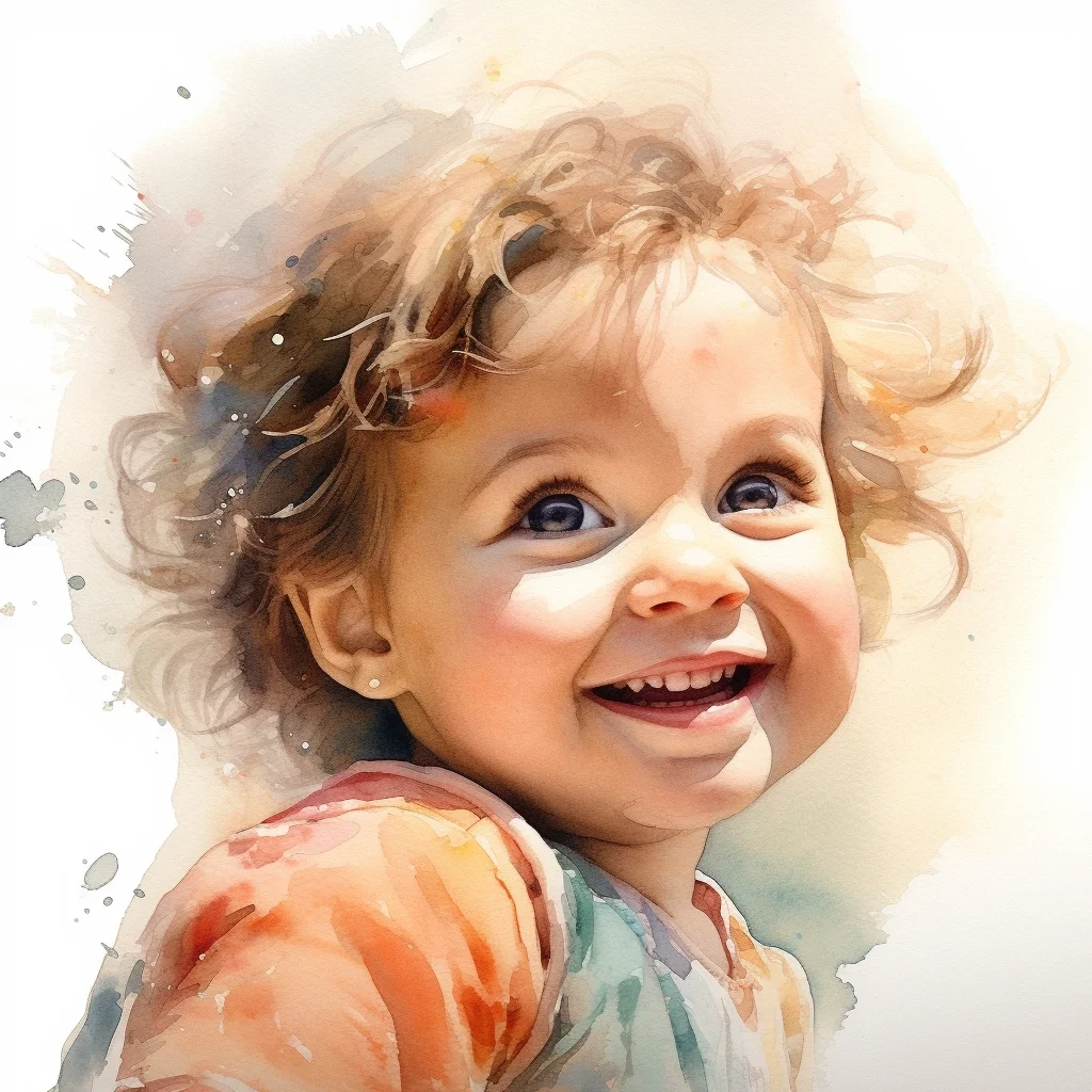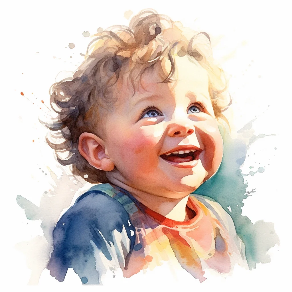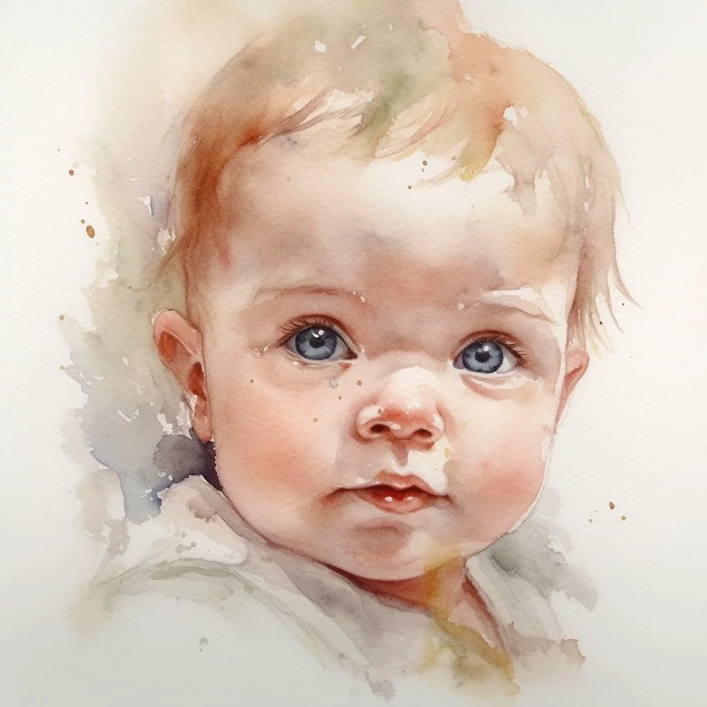 水彩人物 水彩画 水彩 AI 小孩 婴儿