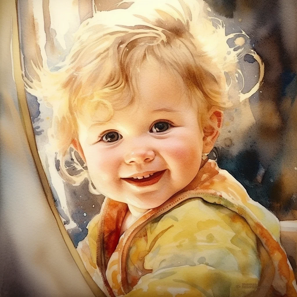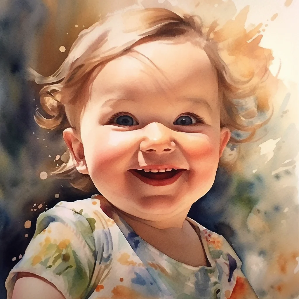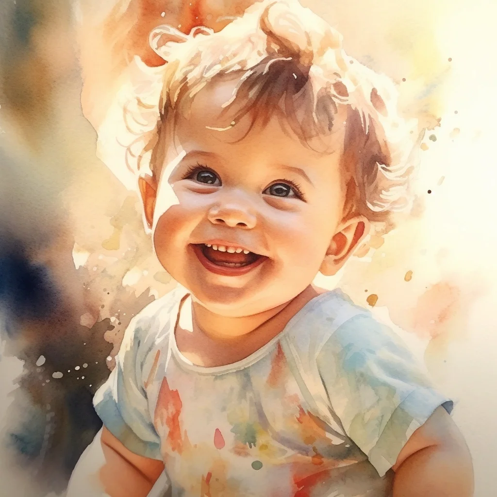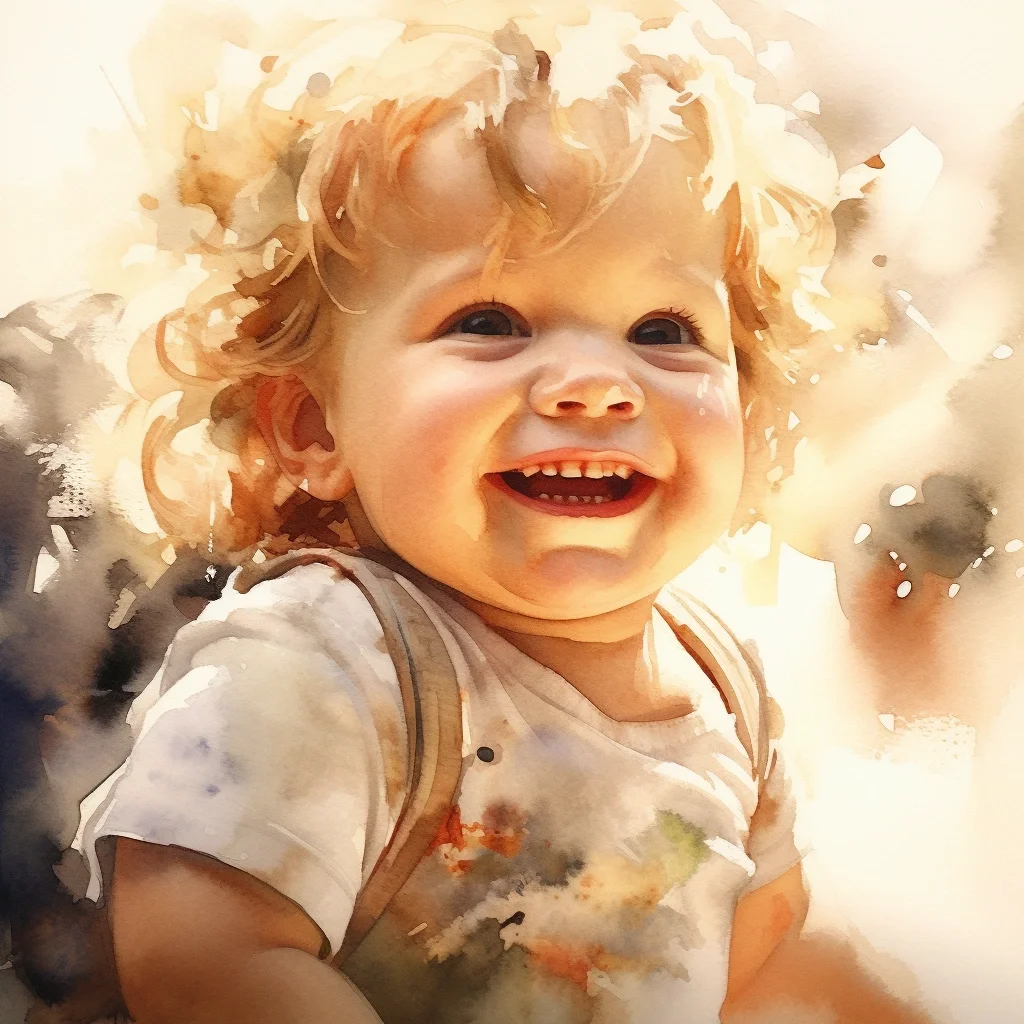 水彩人物 水彩画 水彩 AI 小孩 婴儿