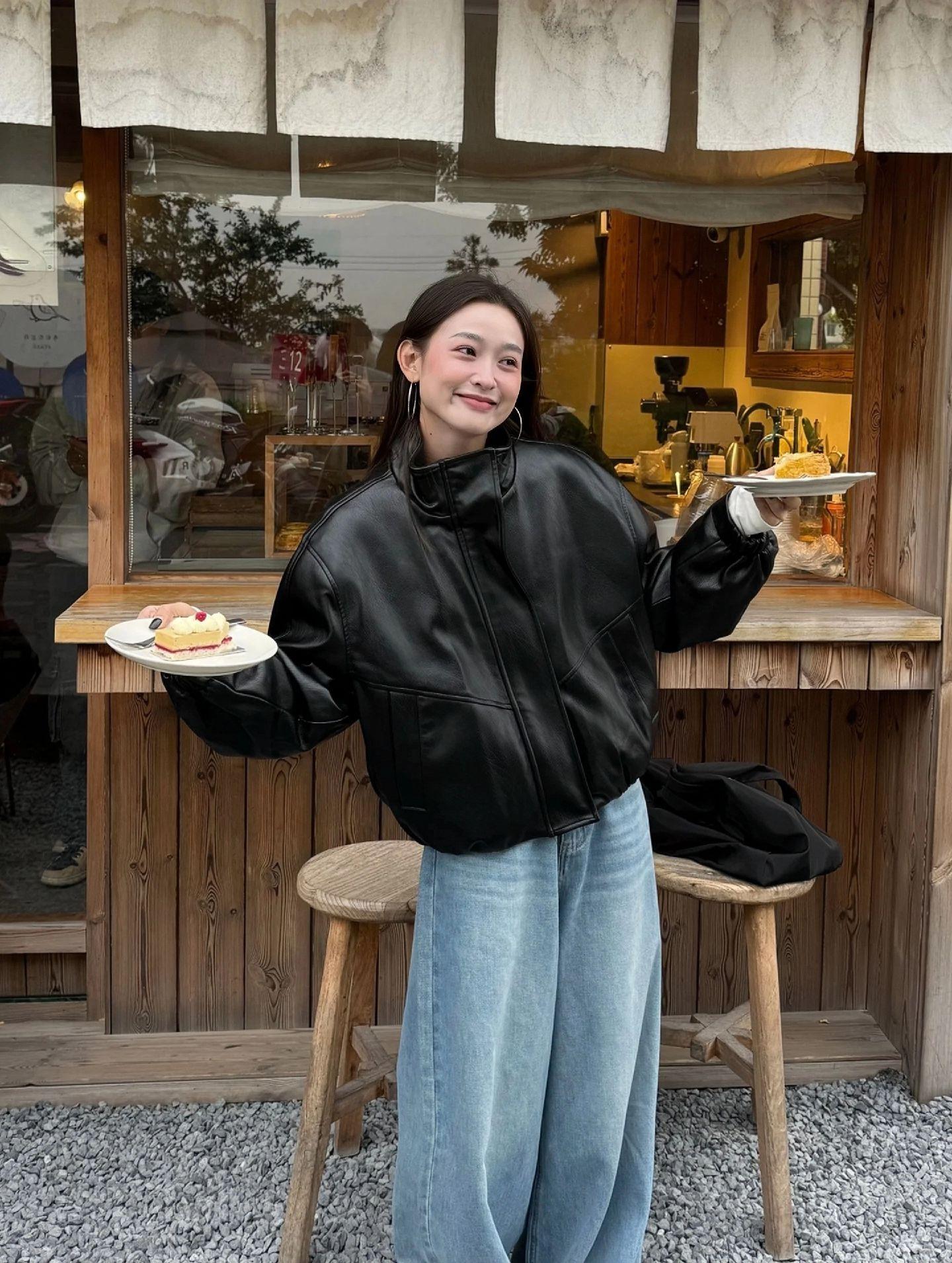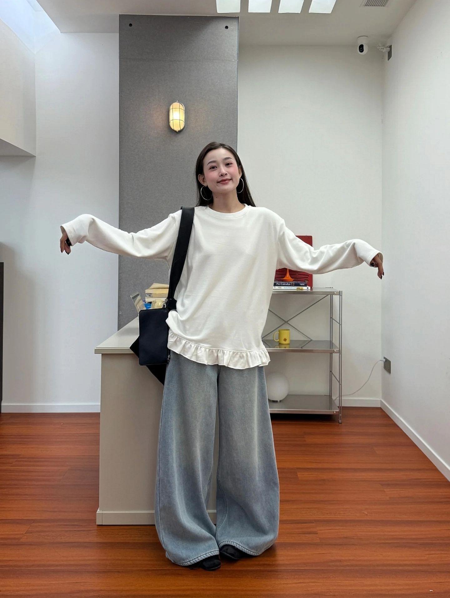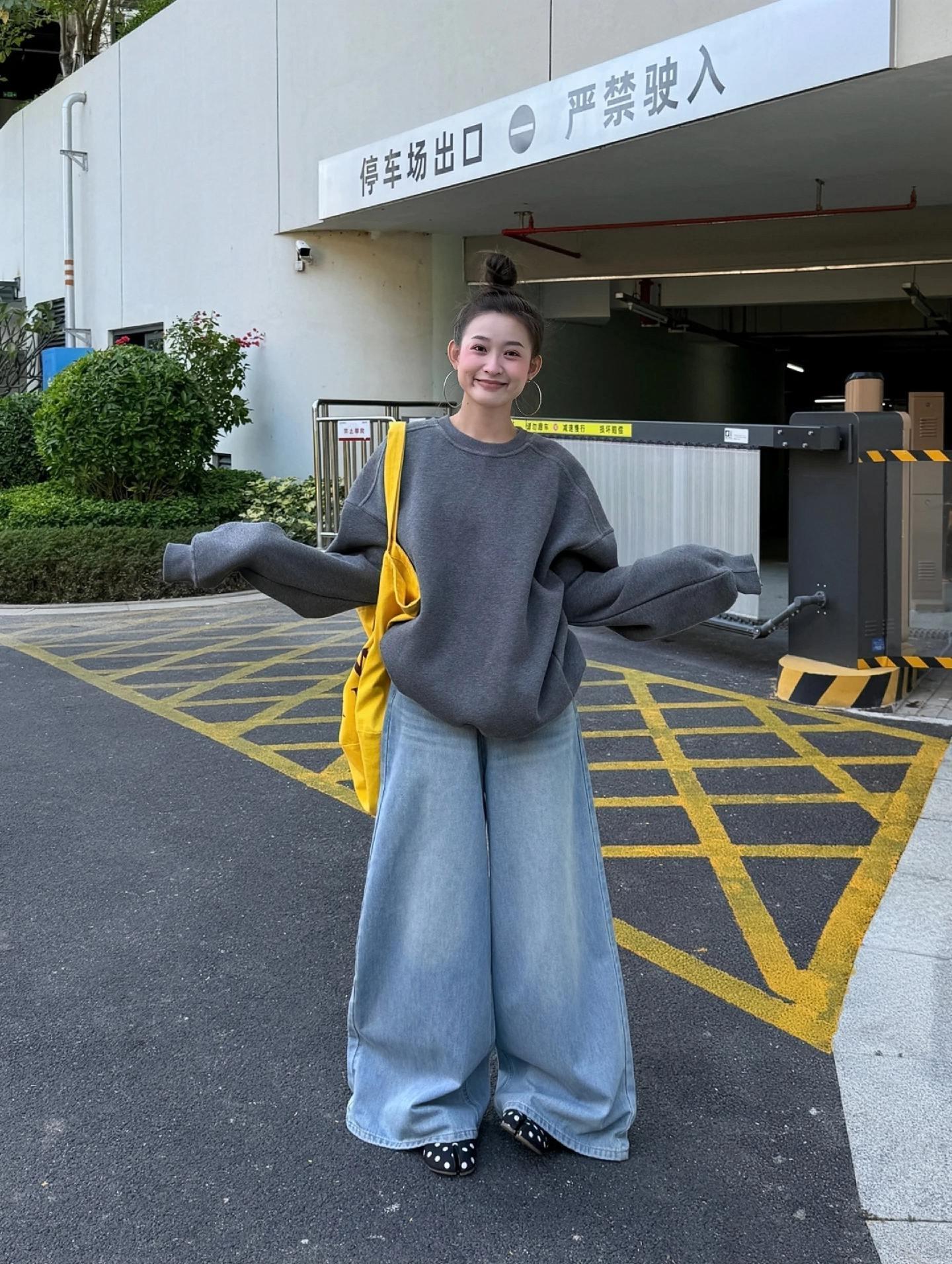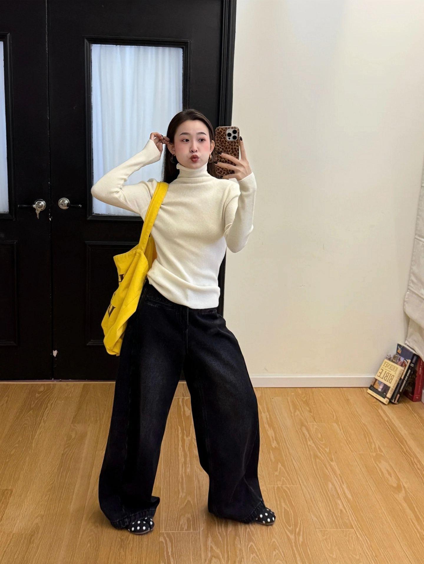 黑衬衫与牛仔堪称都市随行的时尚王炸组合!如黑色V领针织衫搭做旧牛仔裤简约