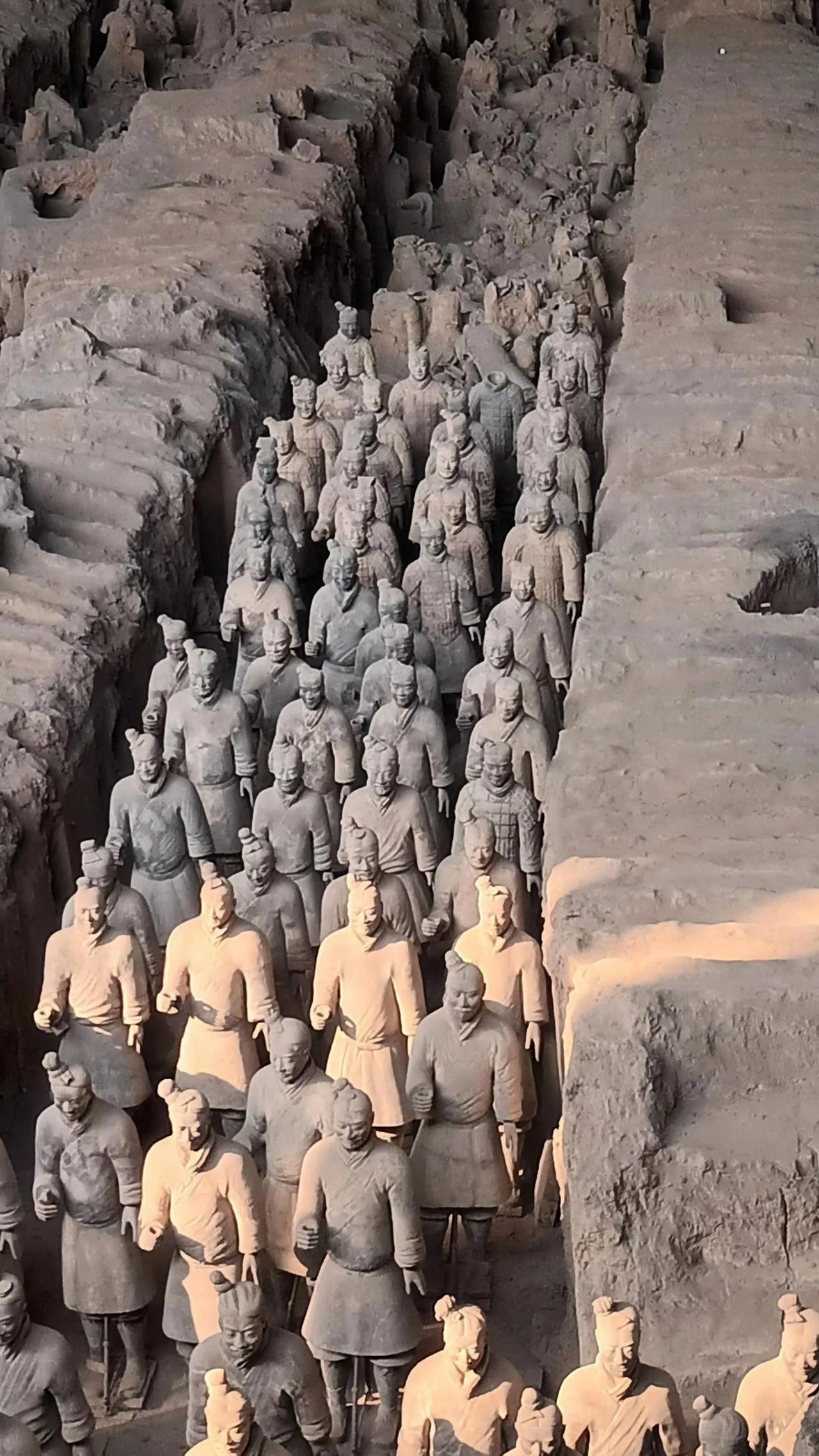 西安遊第三天到了临潼区骊山北麓的秦始皇兵马俑博物馆及华清宫,著名的西安事变时蒋介石下榻处就在骊山这里,有索道上山。 亲临兵马俑坑大棚,感一代君皇殉葬品兵马俑的阵势绝无仅有,真是天地在我脚下,君皇权力达至巅峰无所不可为。华清宮是唐玄宗每年带宠妃杨玉环到此遊幸避暑浴汤遗址,那汉白玉杨贵妃丰腴雕像似乎为“春寒赐浴华清池,温泉水滑洗凝脂”千古名句下了注脚。