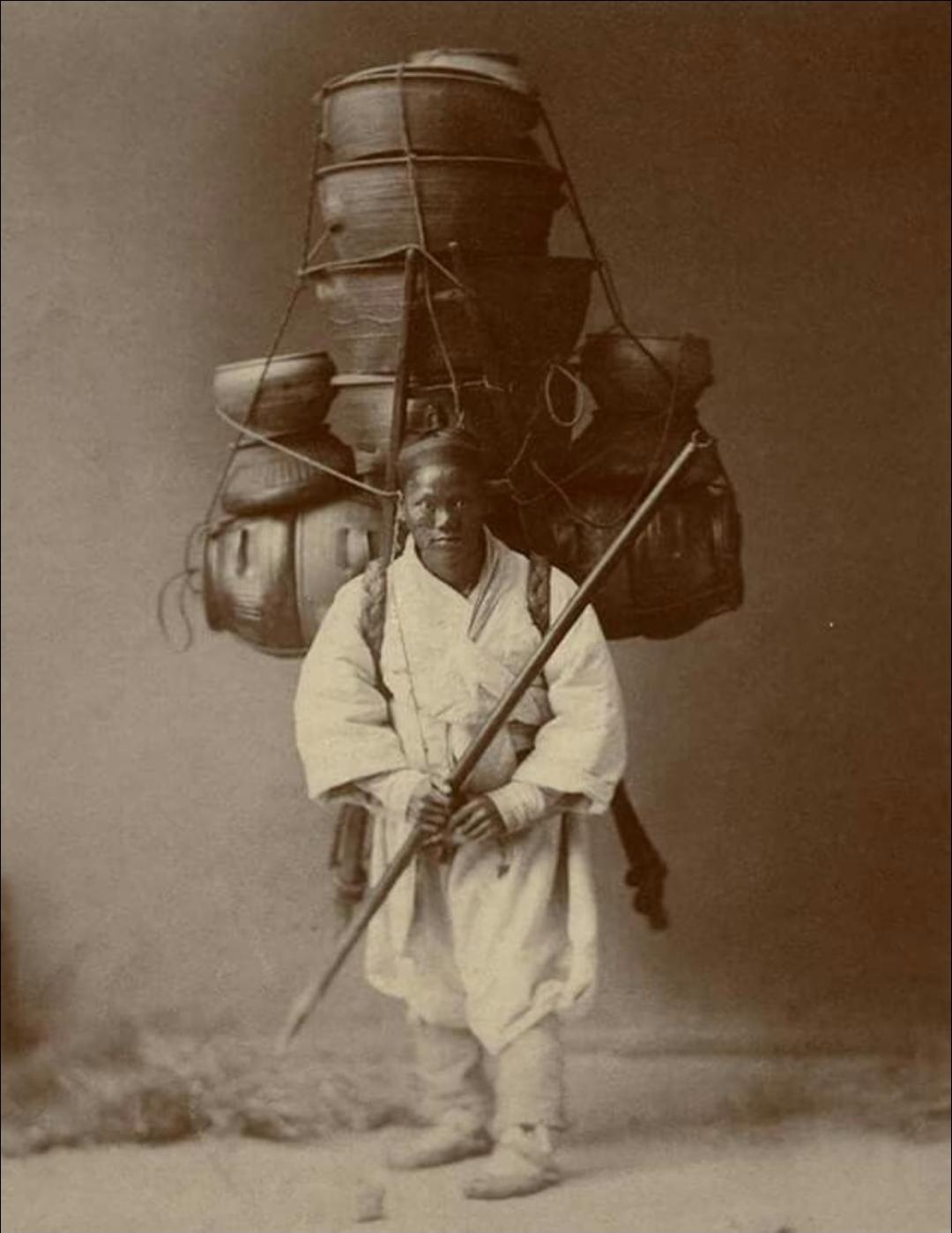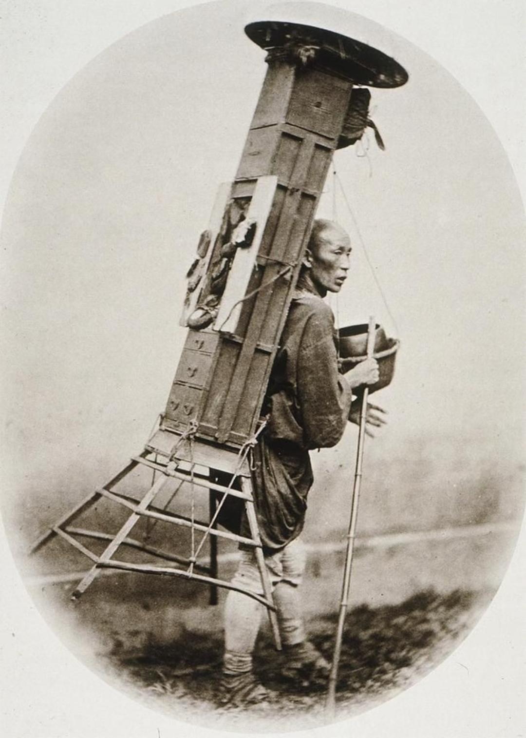 珍贵老照片 清末街头的卖货郎。一百多年前的街拍,这组街头群像很有感染力...