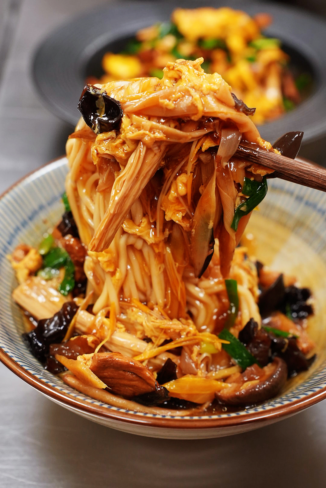 遇火即燃,遇水即化的龙须面今天复习一下龙须面,午餐吃大盘鸡,汁收多了