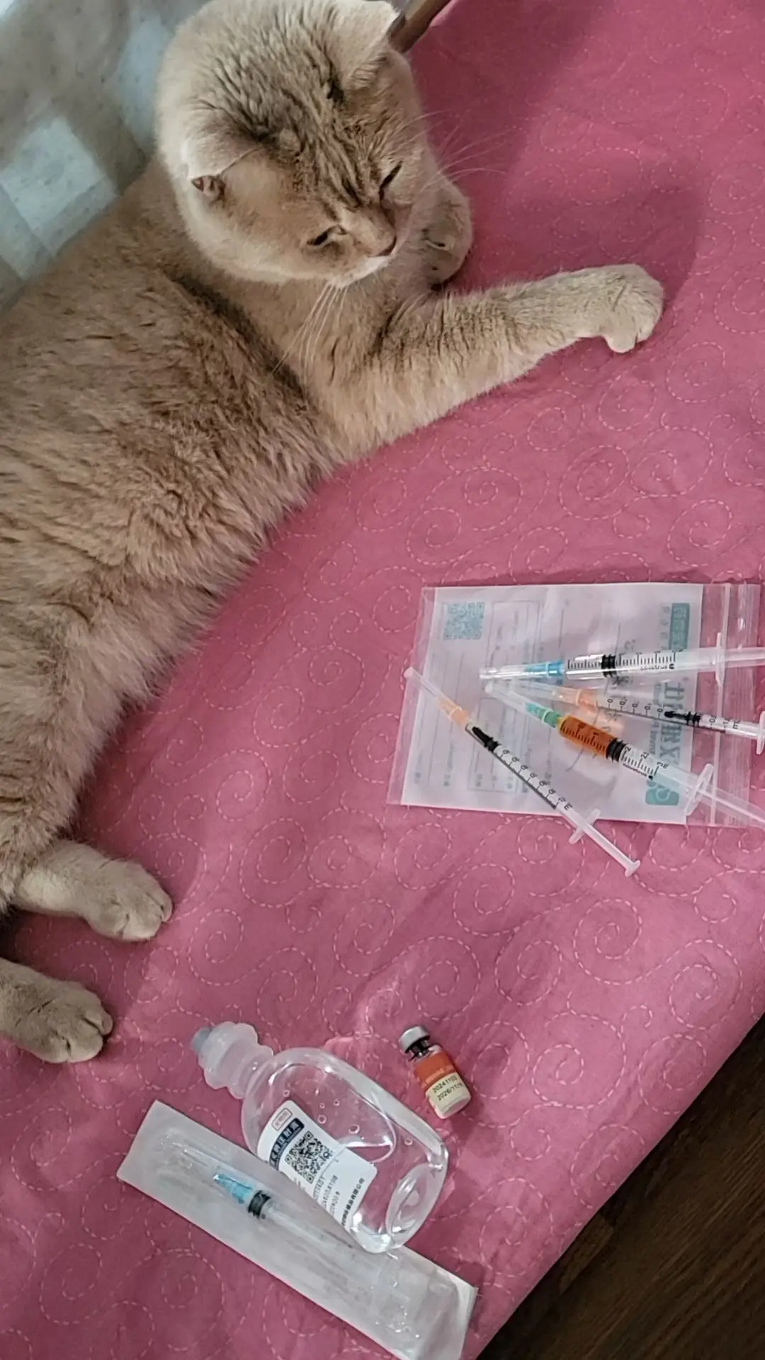 把针带回家,麻麻打,有一小支需要和生理盐水稀释在打,不把咪咪带去医院折腾了,哈尔滨的天,太冷