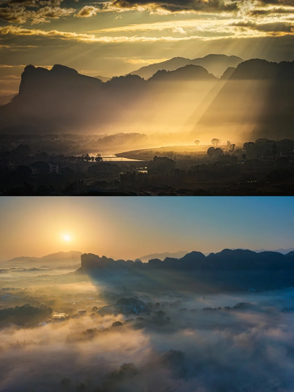 迎仙台的日落也巨绝🌅,暖金色的光洒在岩壁上,风里飘着山野气息,冬日的龙虎山还有绿意和丹霞相映,真的太美了!