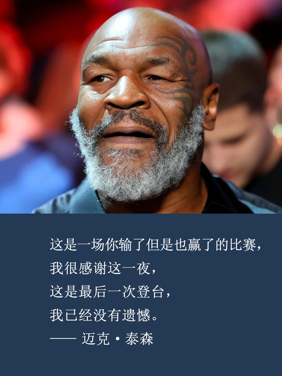 “这是一场你输了但是也赢了的比赛,我很感谢这一夜,这是最后一次登台,我已经没有遗憾。”