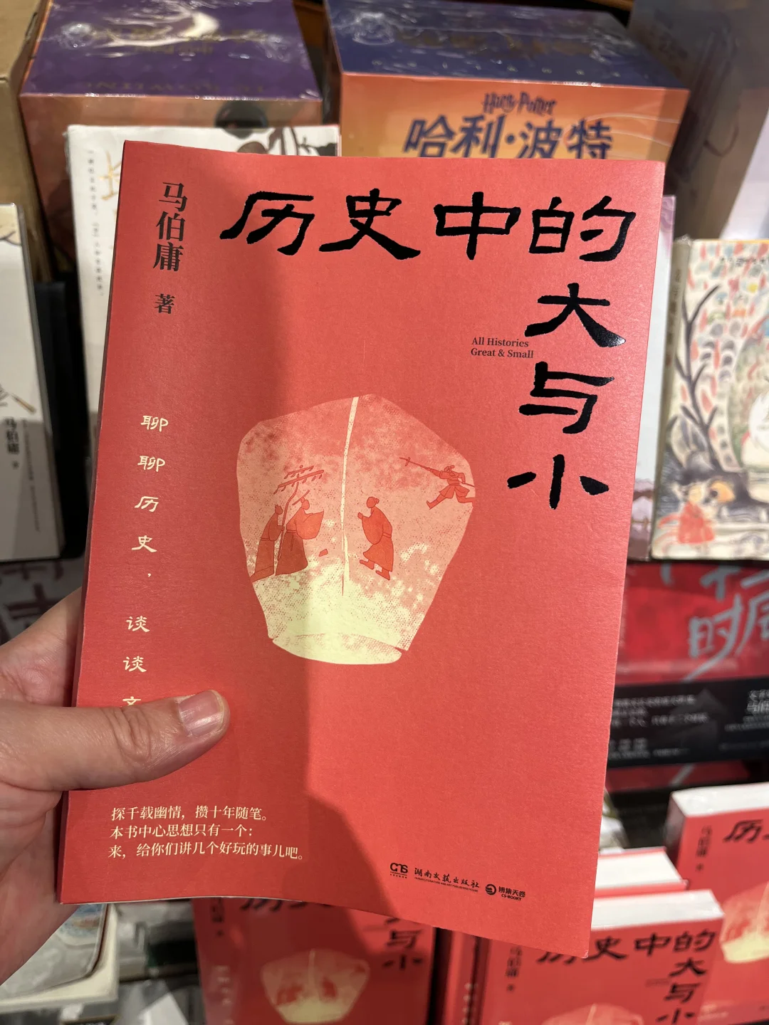 晚上逛书店📚 看到进门最显眼处就是马伯庸近些年的作品 貌似本本都畅销啊~特别是《长安的荔枝》《太白金星有点烦》《桃花源没事儿》这几本名气很大! 最新出的《历史中的大与小》 封面设计简洁,看起来也很不错呢 马老师可以说是近些年最高产的作家了吧 而且没有一本扑街,几乎本本畅销…… 这估计很多老作家都望尘莫及吧 欢迎评论区分享 你最近看了马老师哪本书? 我先自己回答:《桃花源没事儿》 写得很生动细腻,还没完全看完!