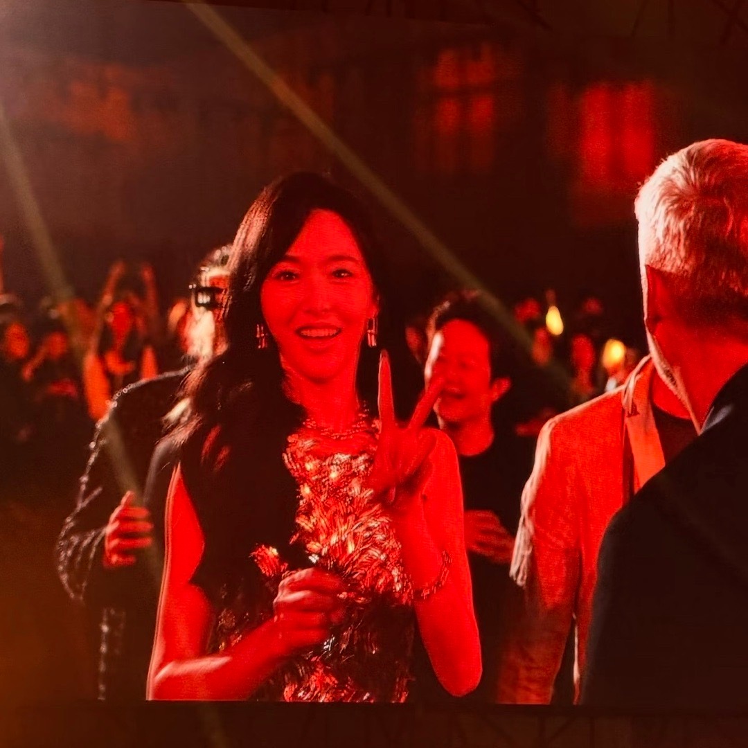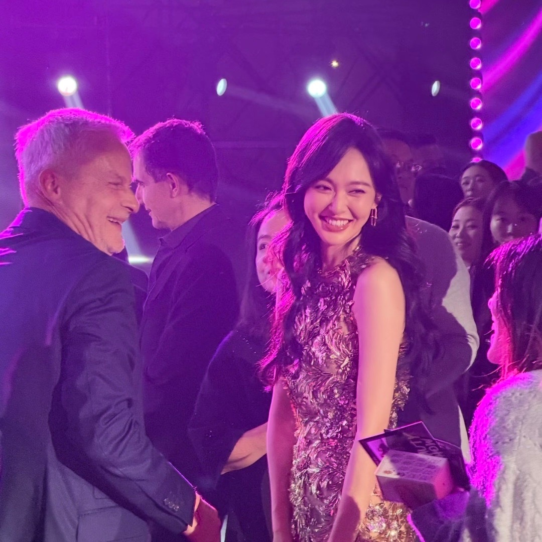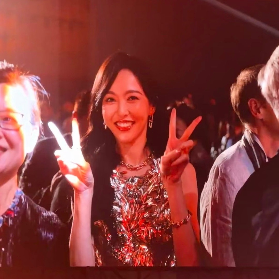张天爱跟素人合影,胯真的好宽,大宅院似的