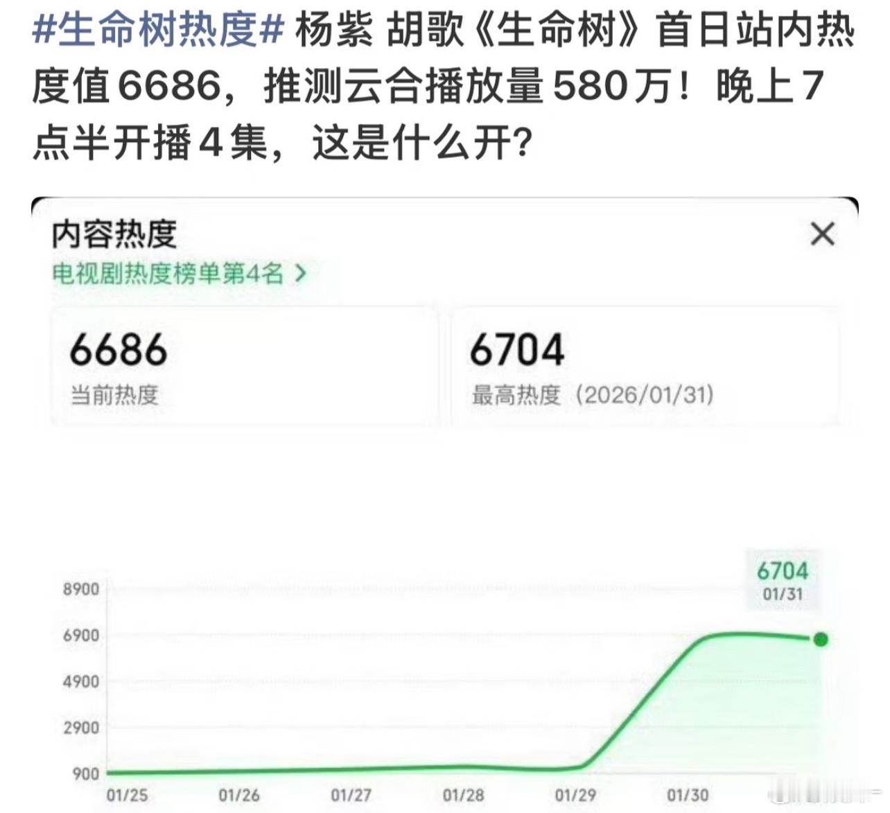 生命树这种正剧很难爆开的,要慢慢发酵,能稳住平播争取热播就好了,粉丝没必要太焦虑