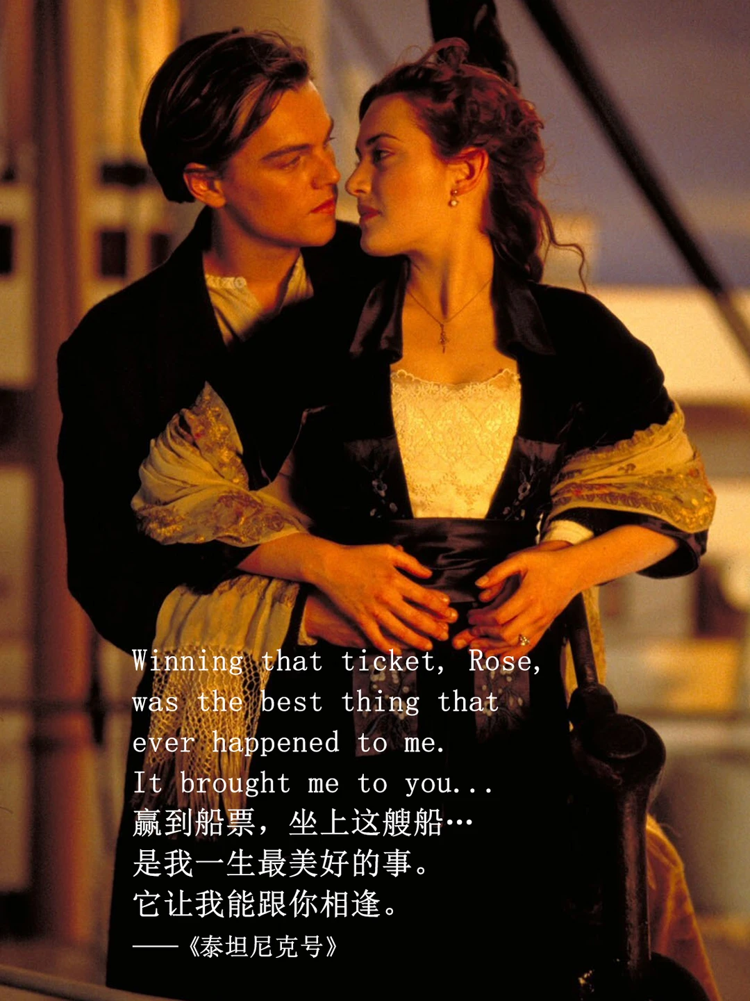Winning that ticket,Rose,was the best thing that ever happened to me. It brought me to you... 赢到船票,坐上这艘船…是我一生最美好的事。它让我能跟你相逢。