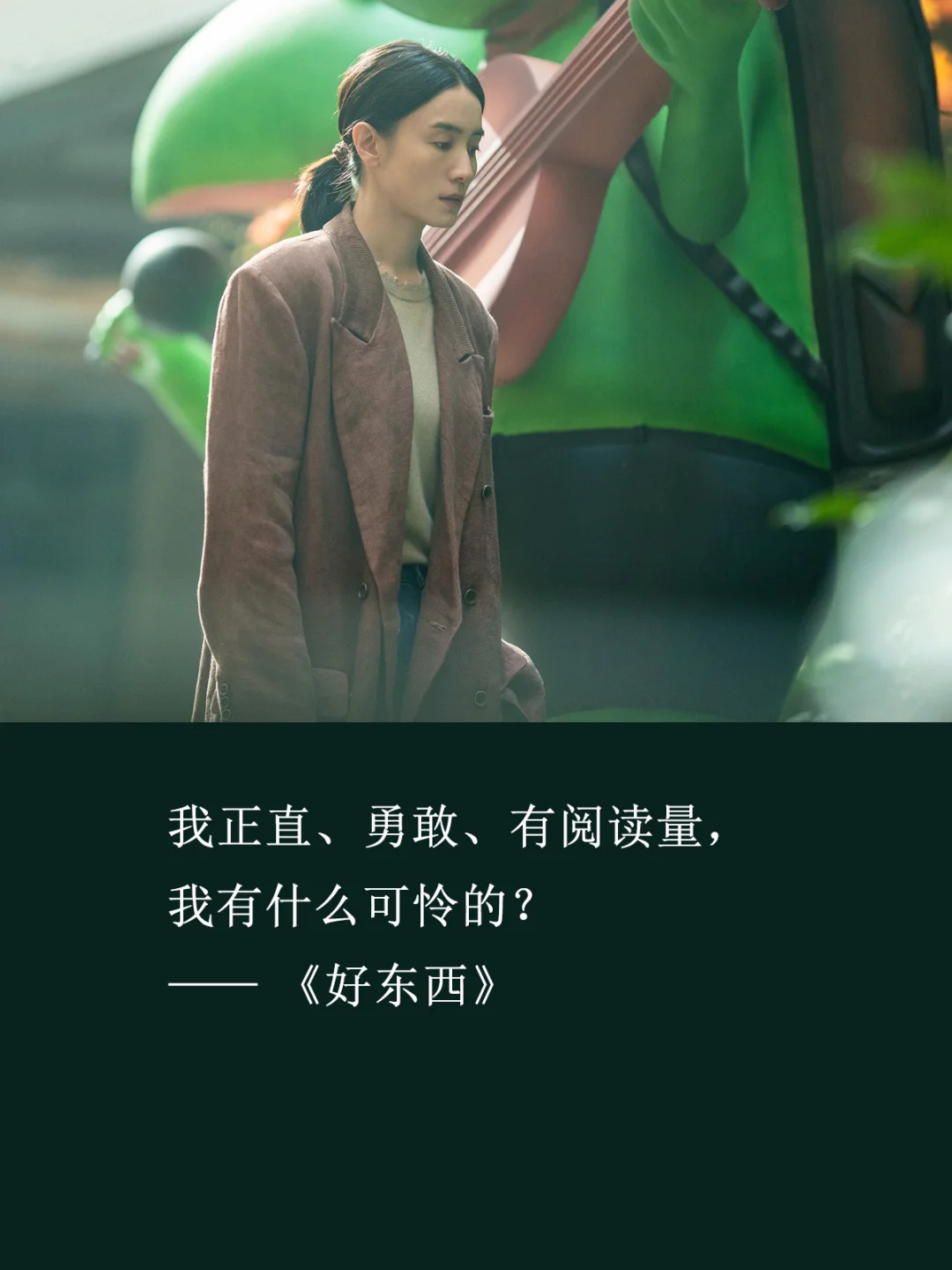 🎬电影《好东西》台词精选: “我拒绝绑架,所以相对自由。” · “你怎么打,女孩子就怎么打(鼓)。” . “总要有人和你说对不起的” . “我都跟父权决裂了,我还能是loser?” . “我正直、勇敢、有阅读量,我有什么可怜的?” . “有人在乎你了,你会有勇气去追求真正的自由。” . “正是因为我们足够乐观和自信,我们才能直面悲剧。” . “能让你开心的就是好东西,不能让你开心的,就是鬼东西。” . 哪一句台词,令你最有感触?