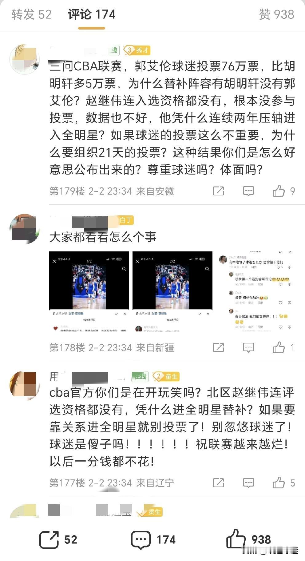 CBA公布本赛季全明星阵容名单 有意思的是,原本南区有郭艾伦 ,北区赵继伟 在投票时因为本赛季参赛场次不够并没有他的投票选项。而今晚公布的名单,郭艾伦消失在南区阵容名单中,赵继伟却出现在了北区阵容名单中。 很多网友留言询问这是为什么? 这件事你怎么看呢?