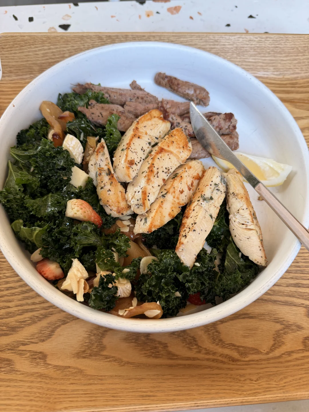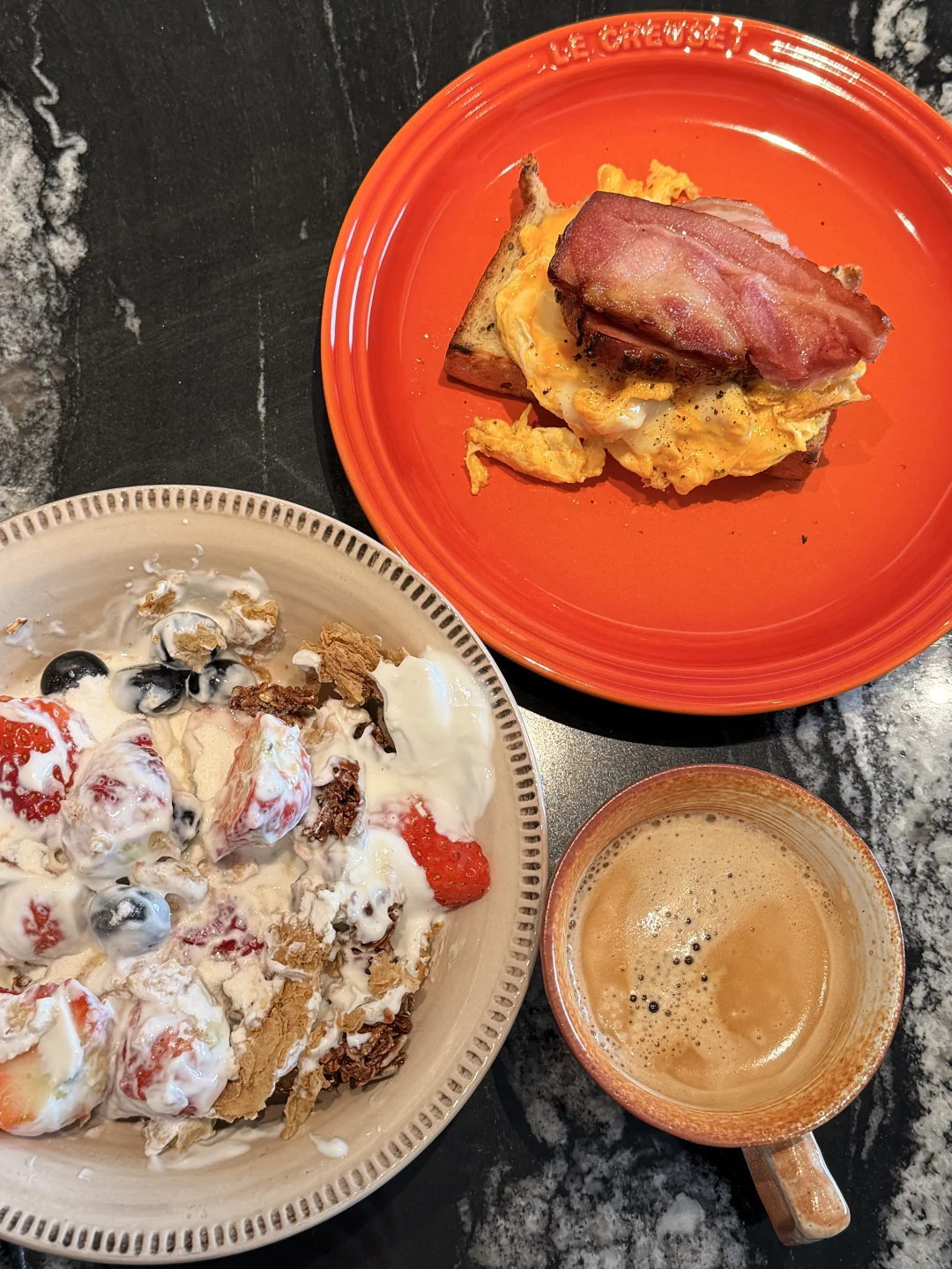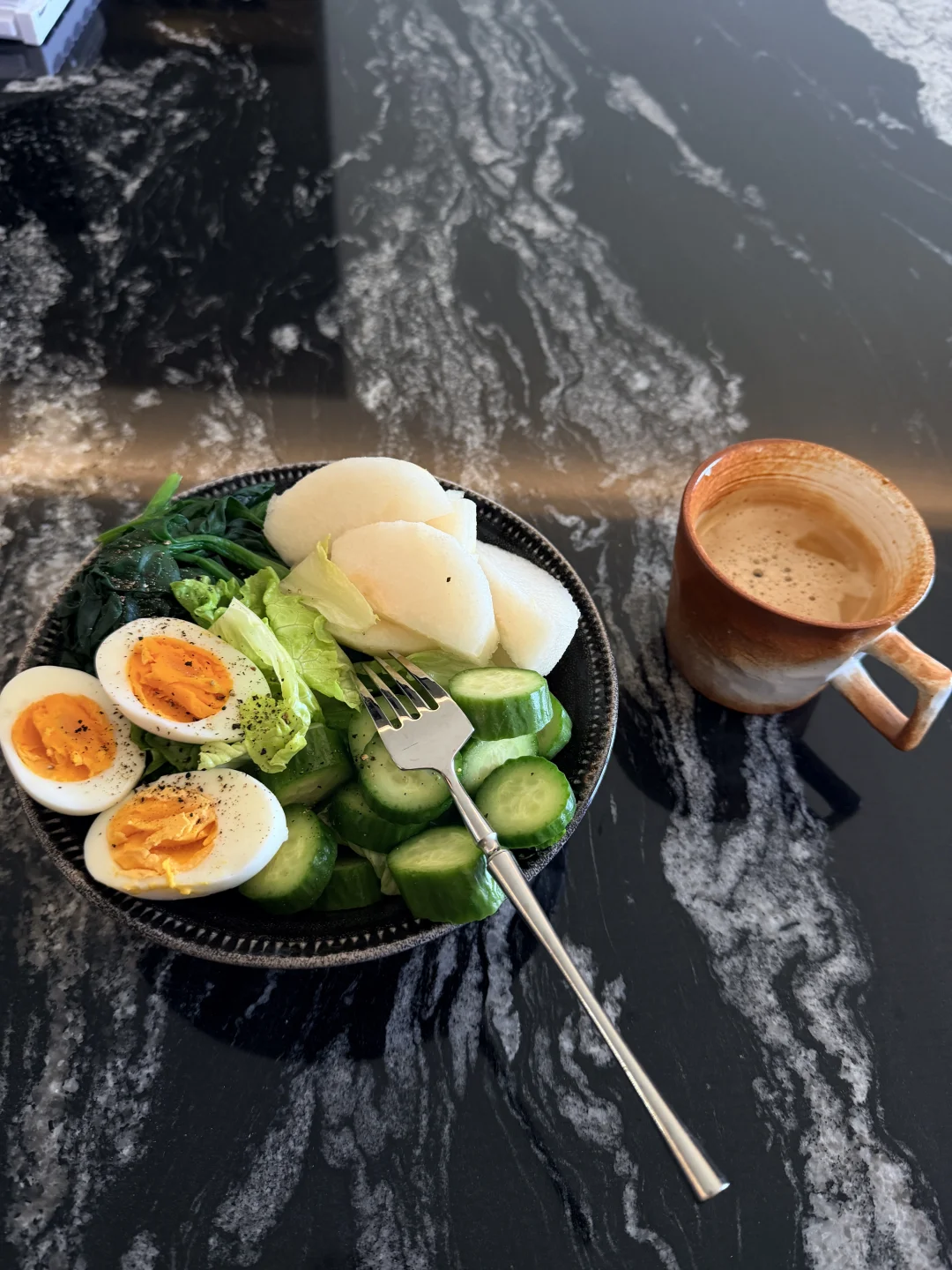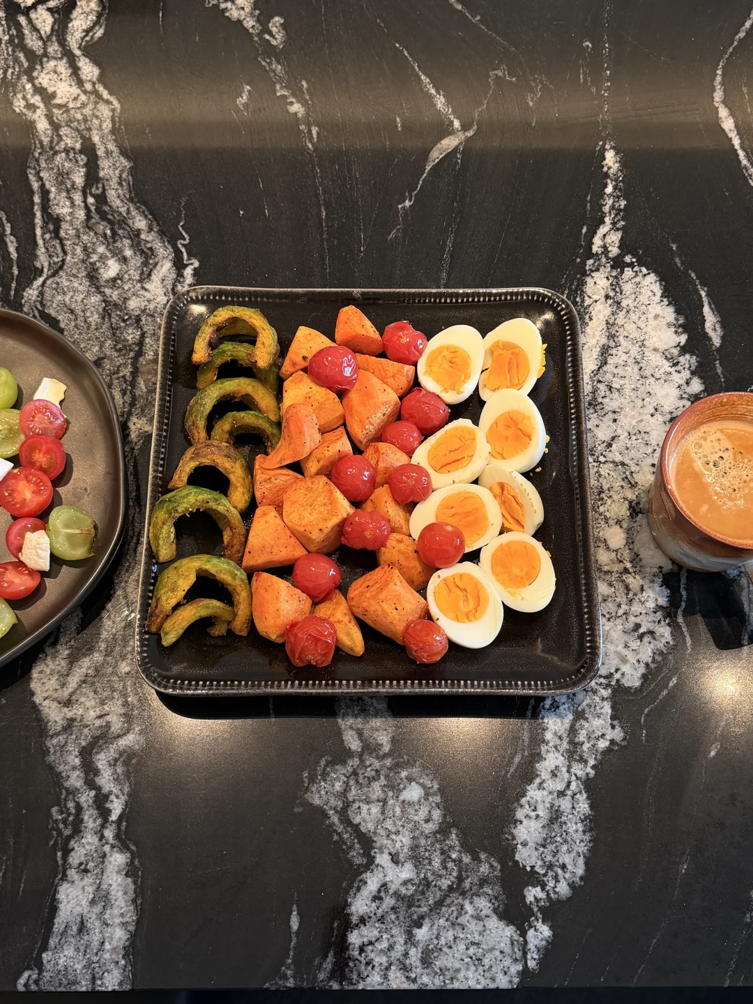 分享金融姐姐的工作·健身·brunch日常🥗 最近下厨比较多 坚持一日两餐 适当的饥饿感 固定的蛋白质 膳食纤维 维生素摄入 碳水以慢碳为主 食材主要是鸡肉 虾 鸡蛋 玉米 南瓜 红薯 搭配桔梗类蔬菜 彩椒以及小番茄 莓果类水果抗氧化 每天十一点睡七点起 没有酒精没有饮料 但我真的离不开黑咖啡☕️ 一周两次健身➕偶尔一次游泳 感觉身体变的越来越轻盈 好爱最近的生活状态😋