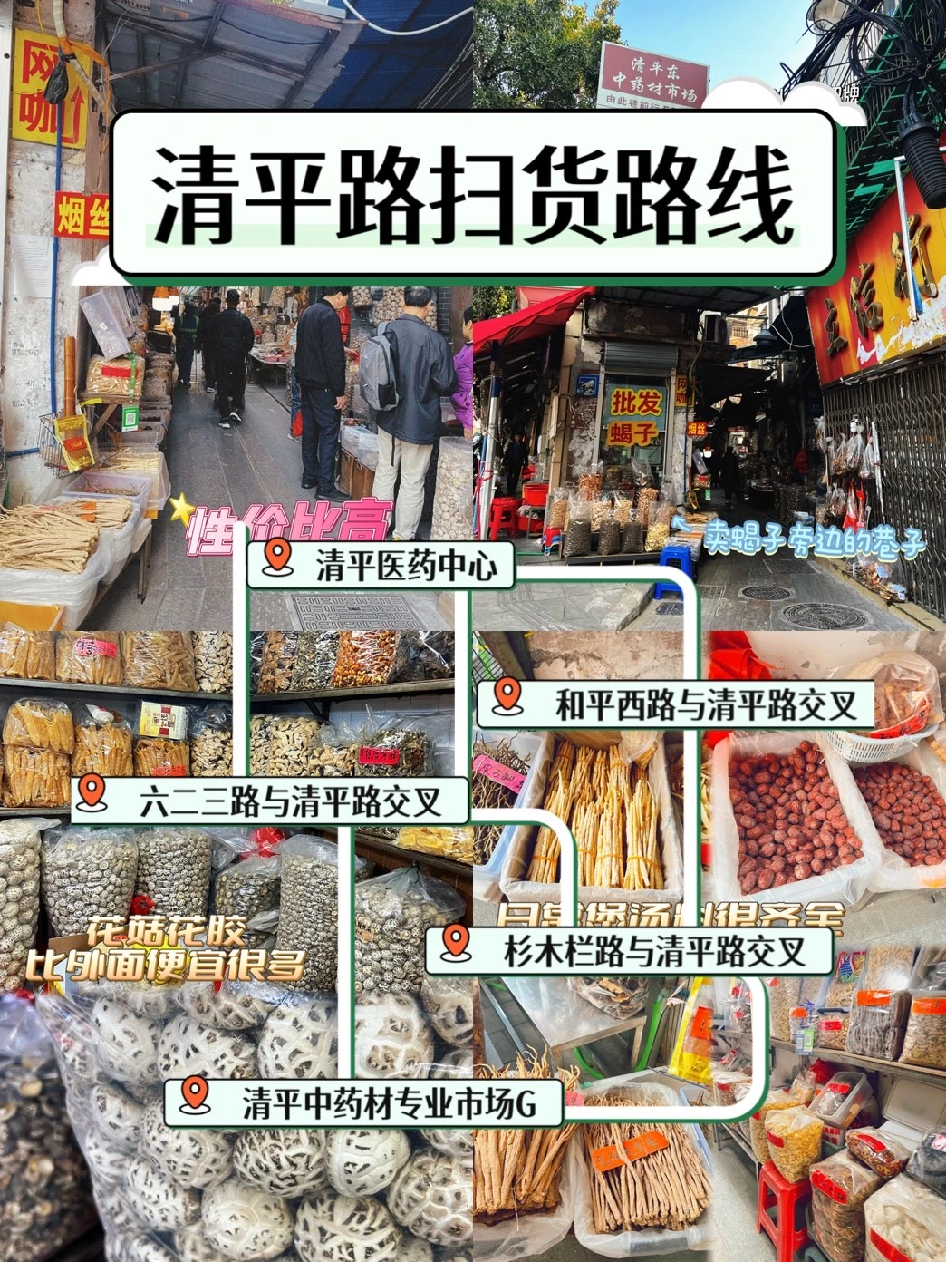 又到春节,每一年的春节前后,广州真的是年货的天堂,十三行买衣服,高第街买内裤,高第西街买鞋,还有今天去的宝藏干货市场——清平路!这里简直就是煲汤养生女孩的天堂,中药材、海味、汤料一站式购齐。但小白第一次来水也挺深,刚逛完的我火速整理一份避坑购物指南,记得收藏!💖
