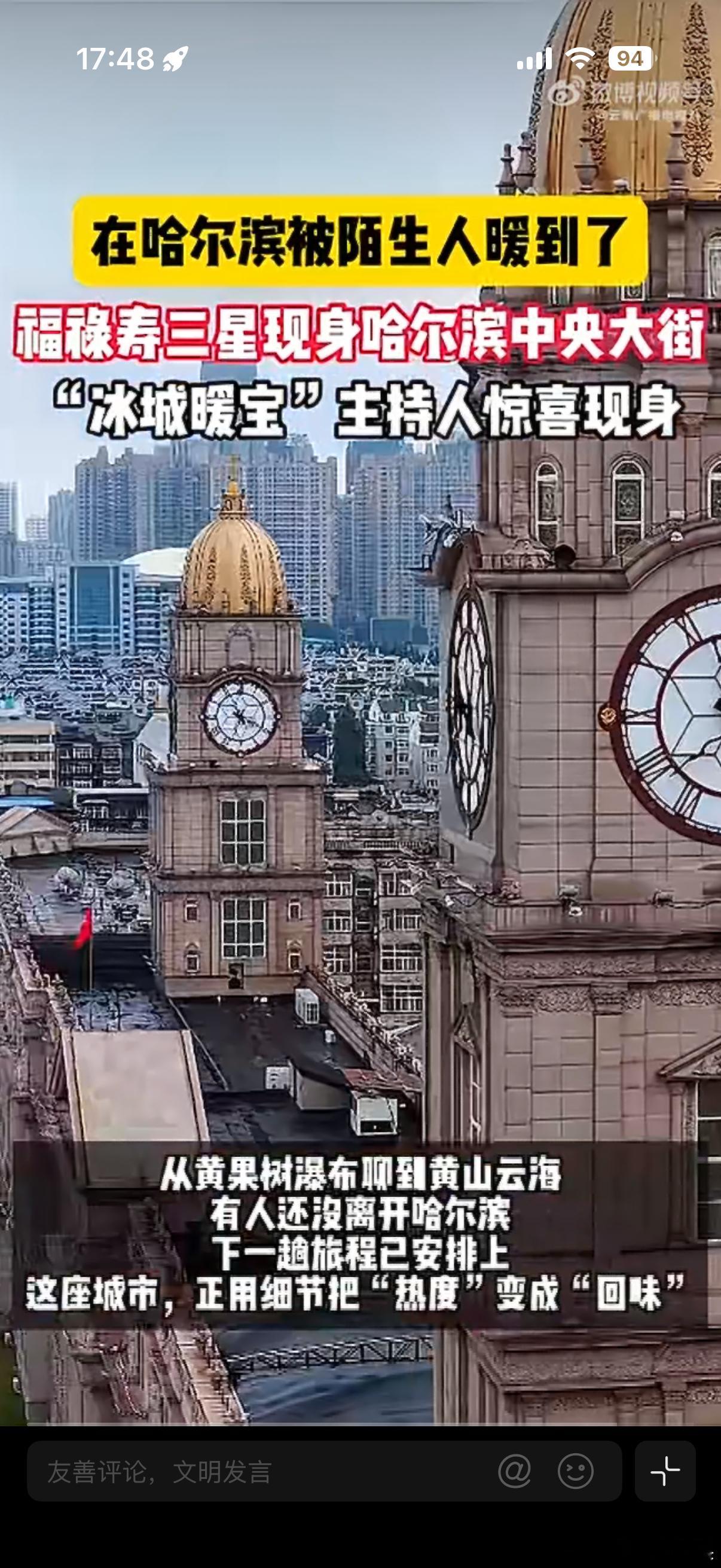 在哈尔滨被陌生人暖到了冰城暖宝主持人现身哈尔滨索菲亚教堂哈尔滨的冬天很冷,但陌生人的善意很暖。在索菲亚教堂,冰城暖宝主持人用热情驱散寒意,温暖了整座城。