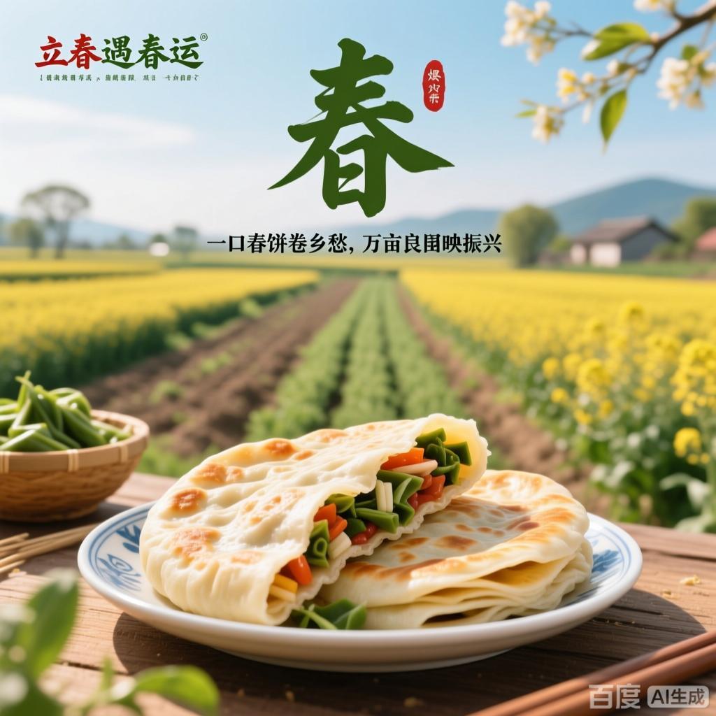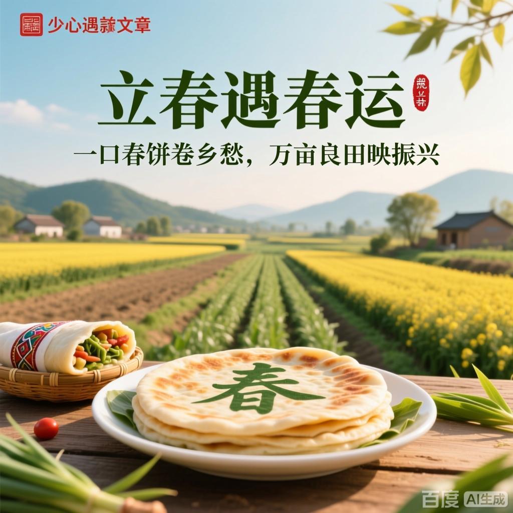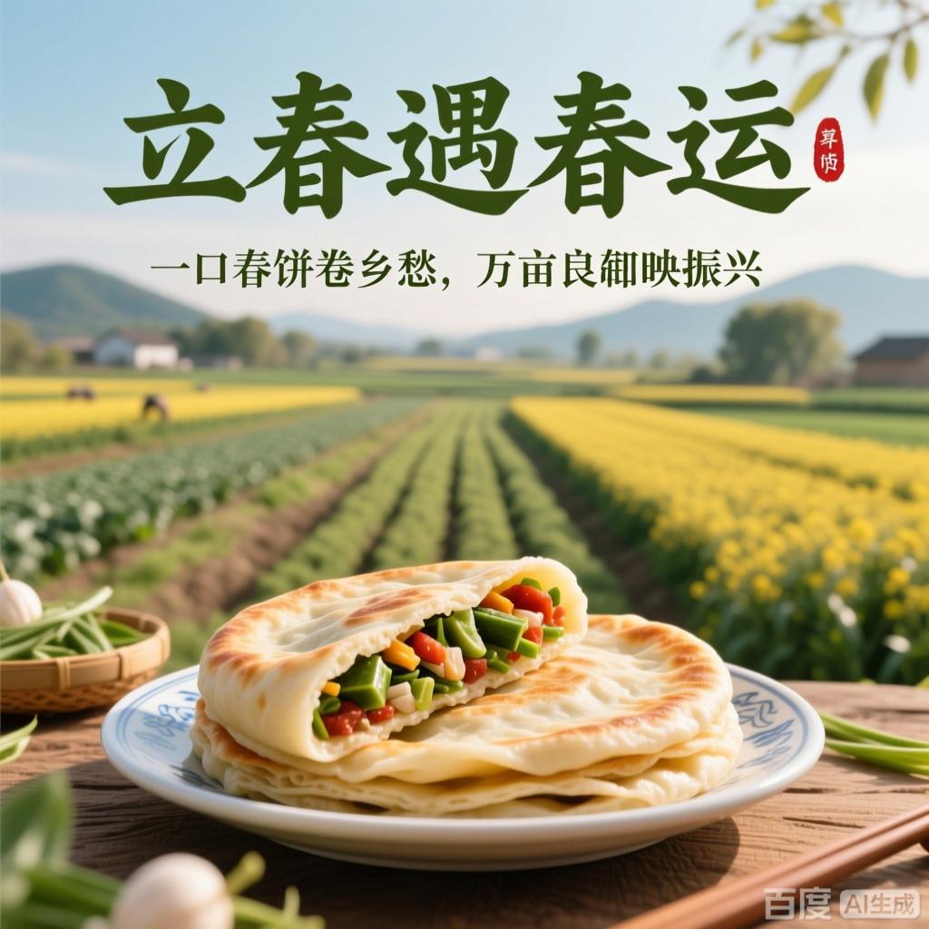 立春遇春运:一口春饼卷乡愁,万亩良田映振兴 当春运的汽笛声与立春的东风撞个满怀,南来北往的行囊里,总裹着一叠薄如蝉翼的春饼。这卷着萝卜丝与韭菜的方寸之物,既是刻在基因里的“咬春”仪式,更成了乡村振兴的味觉密码——从村口灶台的烟火气,到万亩良田的新图景,春饼里卷着的不仅是游子的乡愁,更是乡土中国的希望。 春饼里的乡土密码 凌晨四点的鲁北村庄,王婶的擀面杖在案板上敲出轻快的节奏。雪白的面团在她手中翻飞,转眼化作一张张透亮的春饼,裹上刚从大棚摘下的青萝卜丝,淋一勺自家榨的花生油。“俺娃在深圳打工,最爱这口‘咬春’。”她将春饼仔细码进保温箱,箱底还垫着一把新割的香菜,“现在村里通了冷链车,寄到深圳还是热乎的。” 这样的场景,正在中国乡村悄然蔓延。过去,春饼是“正月里的稀罕物”,如今却成了带动农户增收的“金名片”。在河南信阳,合作社将传统春饼改良成真空包装的“非遗礼盒”,搭配本地特产的香椿酱、土鸡蛋,去年春运期间线上销量突破10万单;在浙江丽水,返乡青年用竹筛晾晒春饼的短视频火遍全网,带动村里的手工春饼作坊扩产三倍,村民人均增收近万元。 从“一口香”到“万亩绿” 春饼的故事,从来不只是面粉与蔬菜的相遇。在山东章丘,种了一辈子地的李大叔最近算起了新账:“以前种普通小麦,一亩地挣500块;现在改种春饼专用的‘济麦44’,订单价翻了一番,还能跟着合作社学有机种植。”不远处的智能温室里,传感器实时监测着土壤湿度,无人机低空喷洒生物农药,曾经“靠天吃饭”的农田,如今成了标准化的“春饼原料基地”。 乡村振兴的春风里,小小的春饼正串联起一条完整的产业链。从优质小麦种植、蔬菜大棚培育,到中央厨房加工、电商平台销售,再到“春饼文化节”带动的乡村旅游,一个传统习俗催生出“农业+文旅+互联网”的新业态。数据显示,仅2025年春运期间,全国农村地区通过“春味经济”实现的农产品销售额就突破80亿元,越来越多的村庄像章丘一样,在春饼的香气里找到了产业振兴的新路径。 行囊里的时代温度 车站的安检口,大学生小林小心翼翼地护着怀里的春饼礼盒。“这是奶奶凌晨三点起来做的,说让我分给同学尝尝。”礼盒上印着一行字:“来自北纬36°的立春味道”,背后是村里新注册的农产品品牌。不远处,农民工老张的蛇皮袋里,除了春饼,还装着一本《大棚蔬菜种植指南》——那是村支书塞给他的,“城里打工累了,回家照样能靠手艺挣钱。” 春饼的旅途,也是乡村与城市的双向奔赴。当城市的订单飞向田间地头,当乡村的味道走进都市餐桌,传统习俗便有了新的生命力。正如一位返乡创业者在朋友圈写的:“我们卷的不是春饼,是土地的希望,是游子的根,是乡村振兴的万千可能。” 汽笛长鸣,列车载着春饼与乡愁驶向远方。车窗外,万亩良田在春光里铺展,绿色的麦浪与白色的大棚交织成画。这一口春饼的滋味,是舌尖上的乡愁,更是乡土中国的未来——当传统与现代相遇,当习俗与产业共振,乡村振兴的画卷,正在每一个立春与春运的交汇时刻,徐徐展开。
