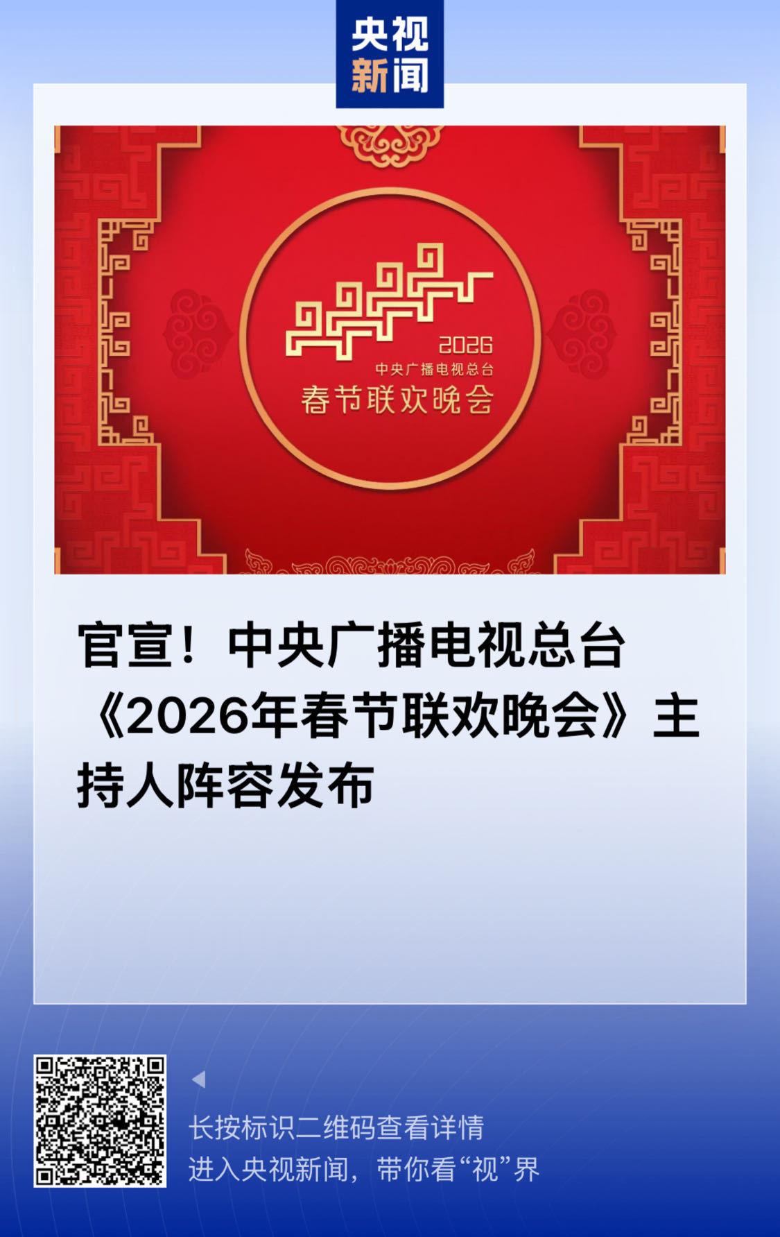 【中央广播电视总台《2026年春节联欢晚会》主持人阵容今日发布】