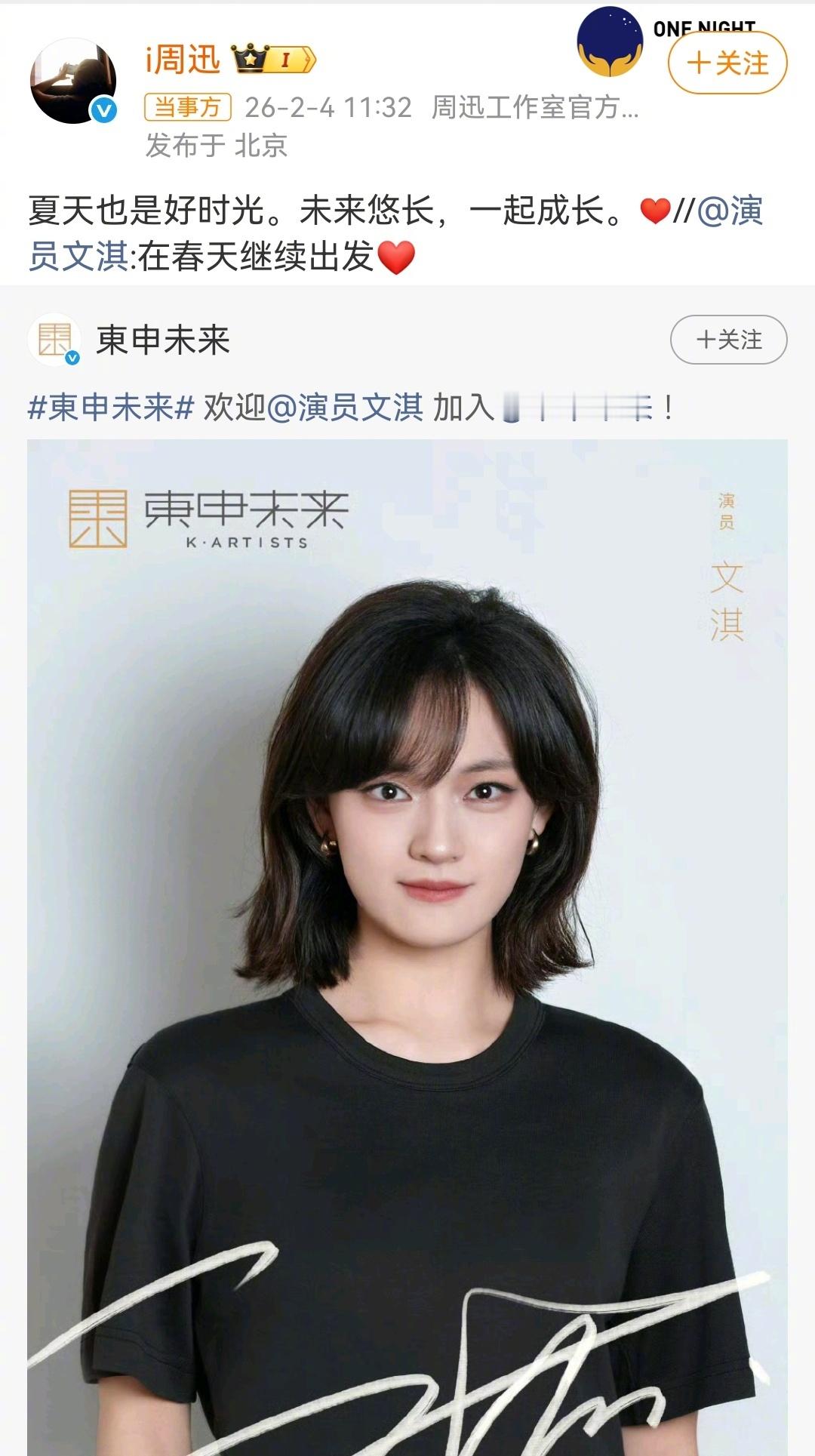 周迅、陈坤、张婧仪,欢迎文淇加入东申未来