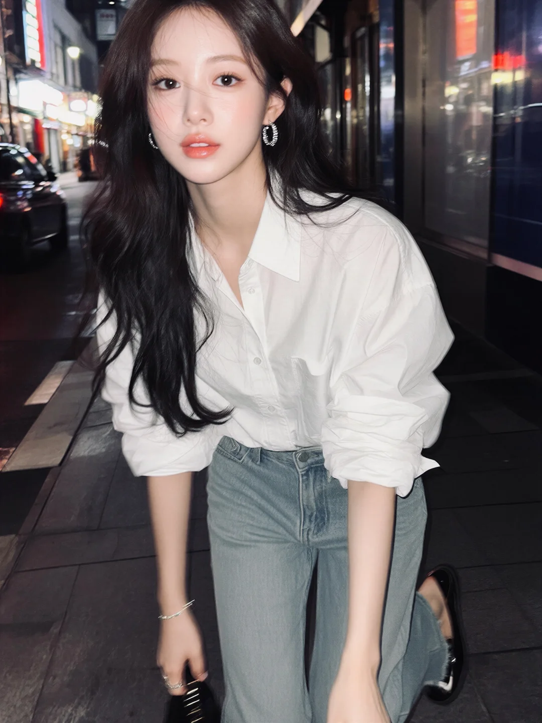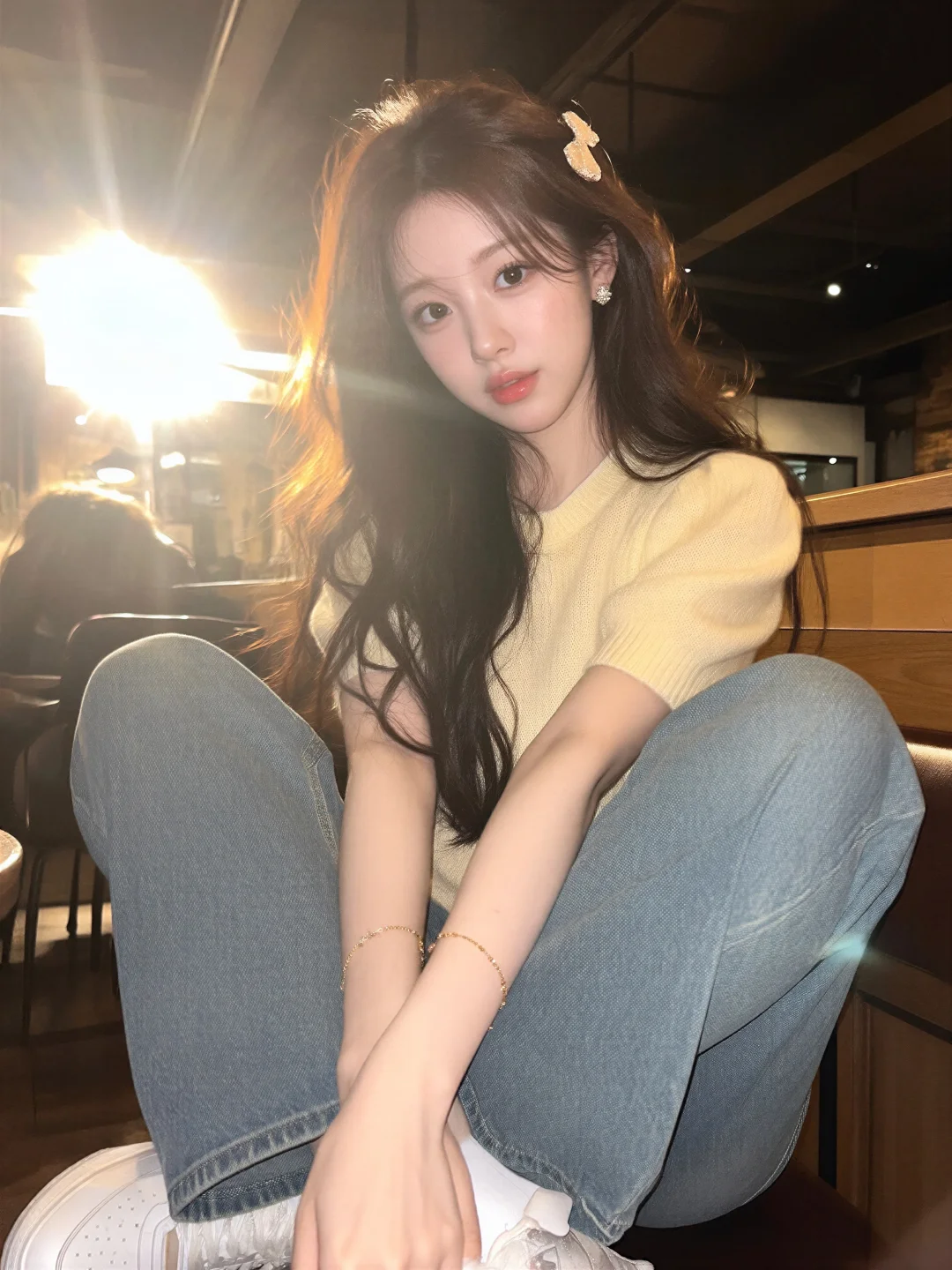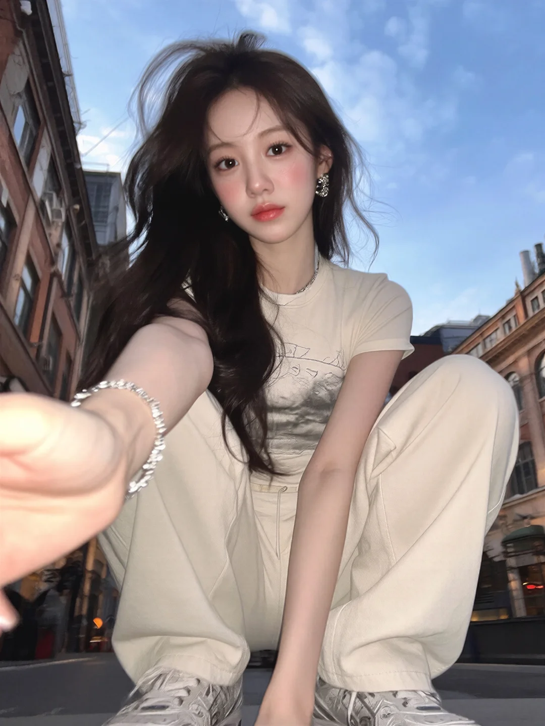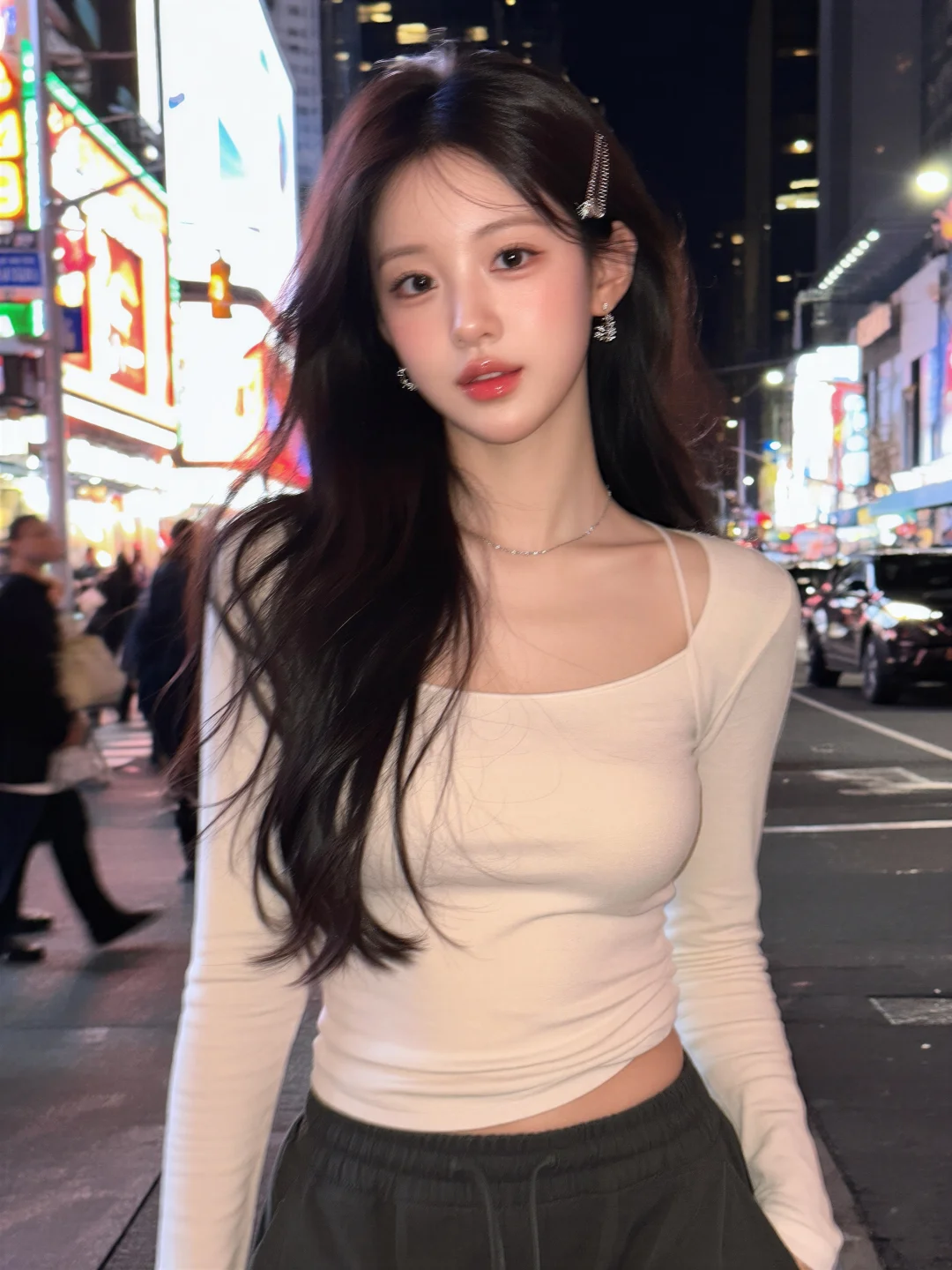 九帧同绘冬日温婉仙。深棕长发微卷编辫垂,发丝如绸泛柔光,碎发轻拂颊。白米毛绒衣软