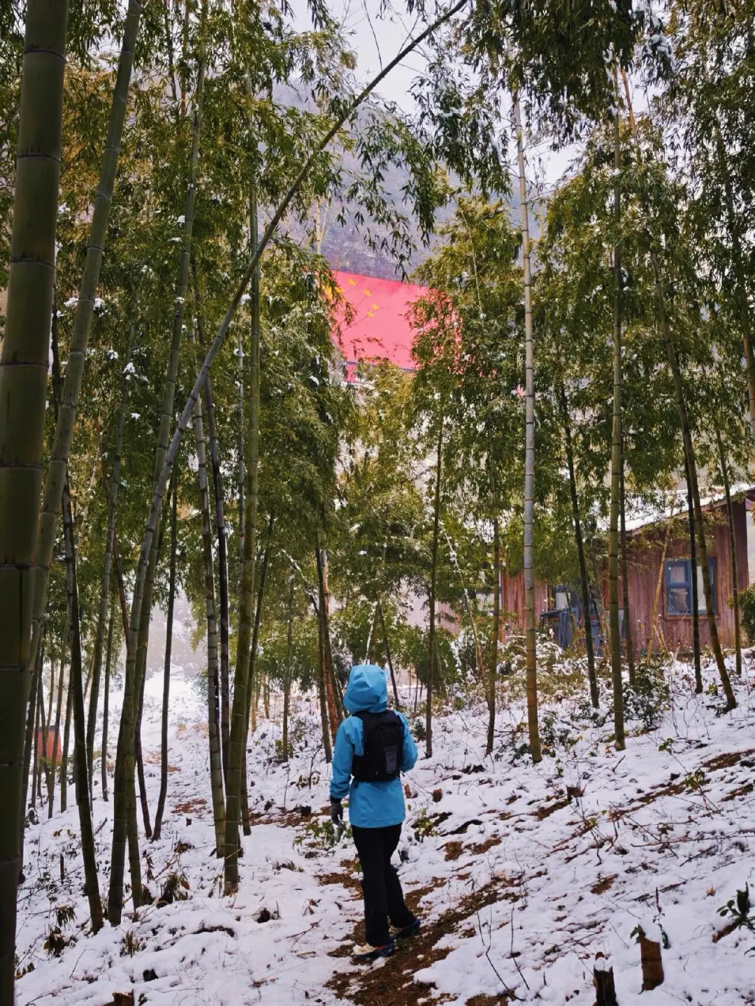[大笑R][大笑R][大笑R]线路全程没遇到几个人。雪厚到能埋住鞋尖,随便踩都不会滑,竹林裹着雪像披了层糖霜,走在山里连呼吸都变慢了~