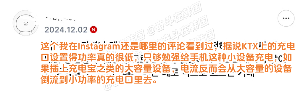 韩国ktx冷知识:别在ktx上给充电宝充电,容易被吸走电 海外新鲜事 热点现场