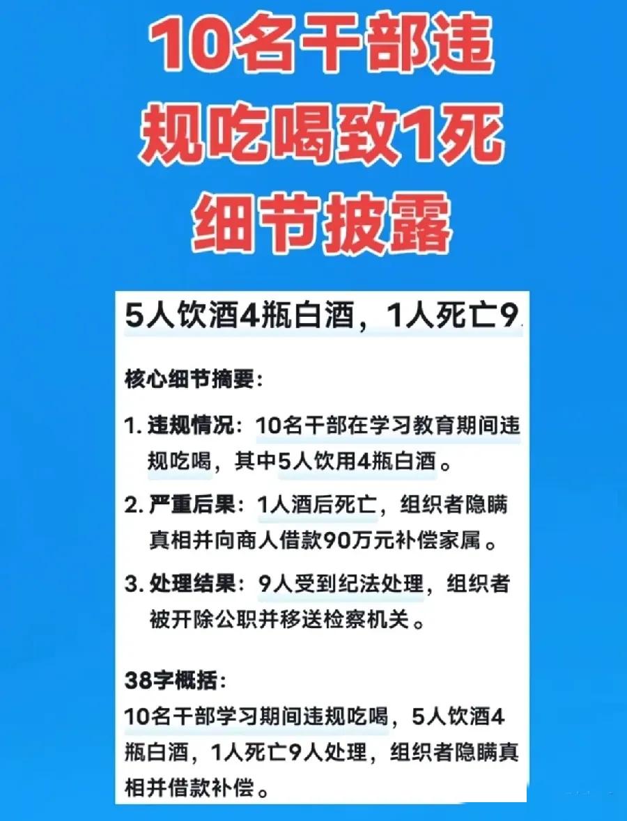 全网替副校长喊冤?先看时间线:1月8日周四,八项规定明令工作日“滴酒不沾”,他端杯就是顶风作案。 醉酒老师凌晨横死街头,同桌四人全被处分。谁劝酒、谁护送、谁通知家属,流程全挂空档,监控一调,责任链清楚得吓人。 副校长以为赔偿到位、协议封口就能翻篇,结果聊天记录被传到纪委,二次曝光,网友质疑“有人想摘乌纱”,程序正义没得讨价还价。 单位内部通报:近三年同一校区已发生两起饮酒致死事件,再出第三条人命,校长帽子集体不保,谁还敢和稀泥? 成年人自负其责没错,但官场酒桌文化不改,下一个“意外”只是档期问题;想平安退休,先把酒杯放下。 小编结语,劝酒出事同桌即同责,协议私了挡不住党纪国法。副校长不冤,冤的是把潜规则当护身符的旧思维——酒杯端起来,帽子就悬上去,一念之差,一生追悔。