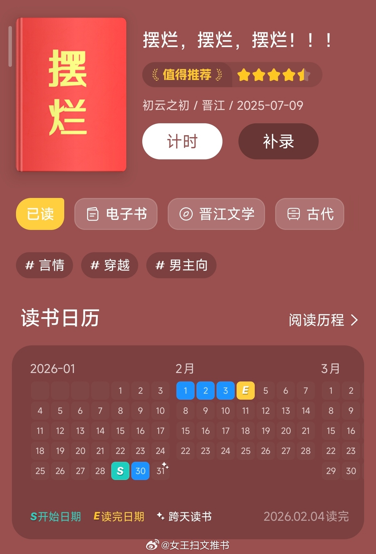 【558】《摆烂,摆烂,摆烂!!!》作者:初云之初(晋江VIP2025-7-9完结)【标签】重生 幼崽 古代【CP】无CP【推荐指数】★★★★☆【简评】好看,不愧是25年诸多排行榜前几名的选手!