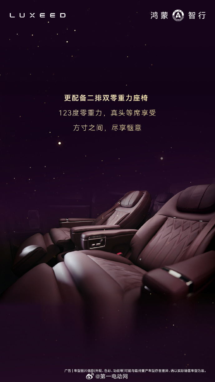 二排123°双零重力座椅支持45°旋转迎宾、90°及180°旋转,并可一键联动调节靠背、腿托、脚踏,天然实木、NAPPA头层真皮与晶钻切工水晶,商务场景非常适配了,大家觉得起售价要多少?