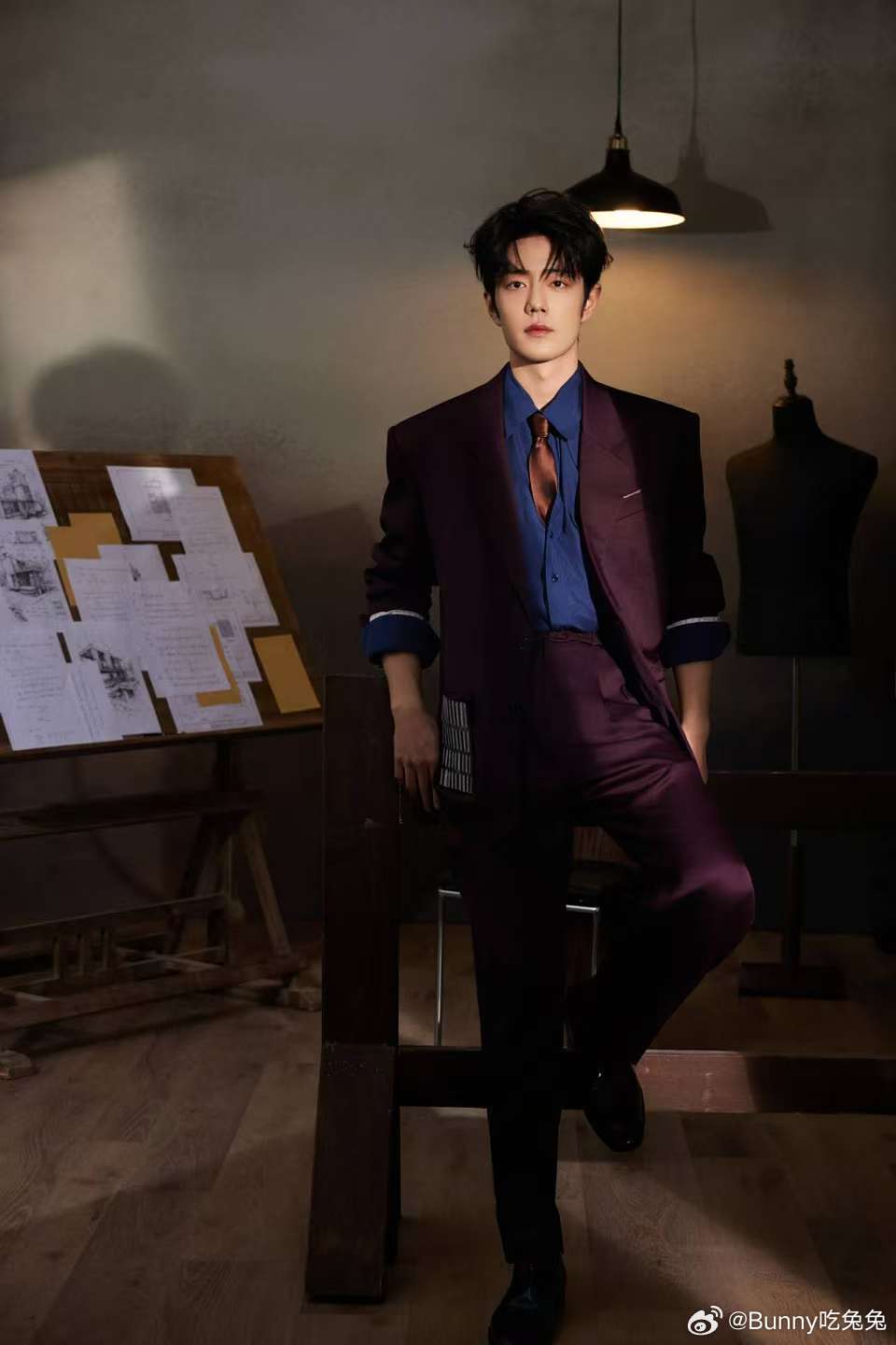 彭昱畅金丝眼镜教科书级穿搭!彭昱畅金丝眼镜+灰色西装+挑染,白玫瑰点睛,张弛有度