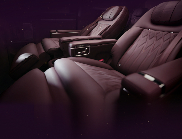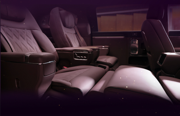 座椅:Nappa真皮座椅二排座椅可旋转(45°,90°,180°均可)太空舒躺模式一键联动调整靠背、腰托、腿托腿托长度最多1.05米二排双零重力座椅,123°调整。