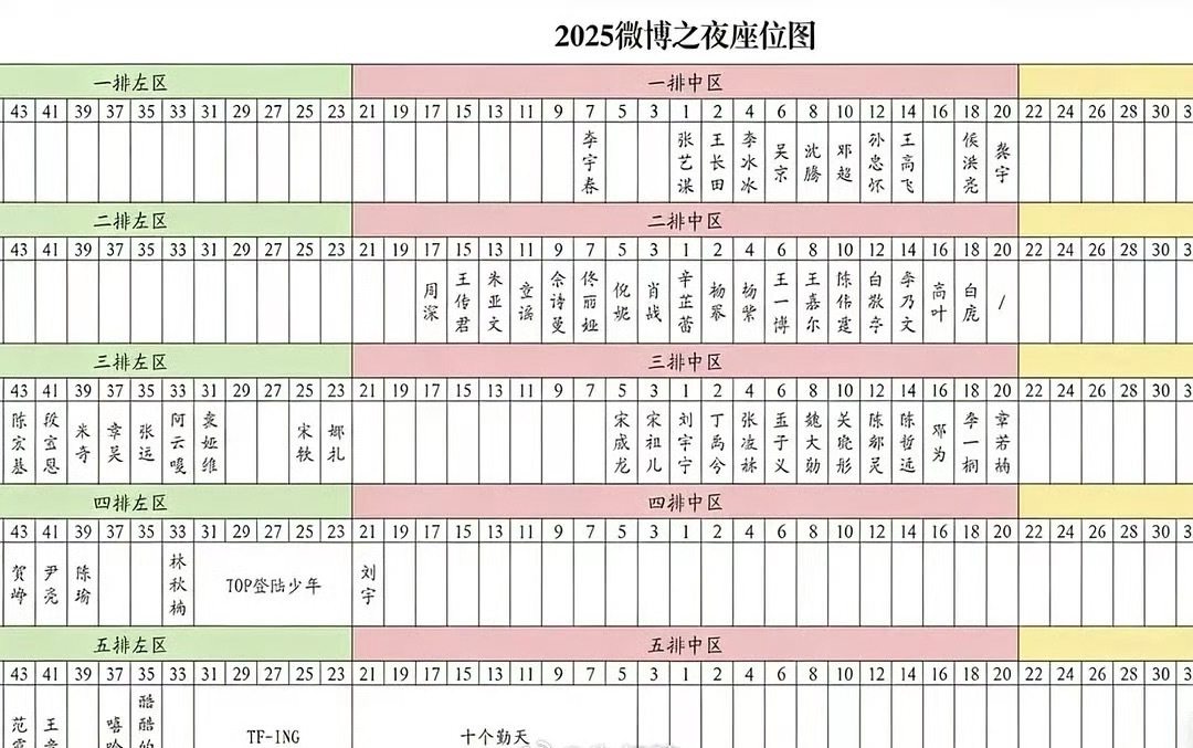 微博之夜座位图来啦~二排是辛芷蕾和杨幂双c位?