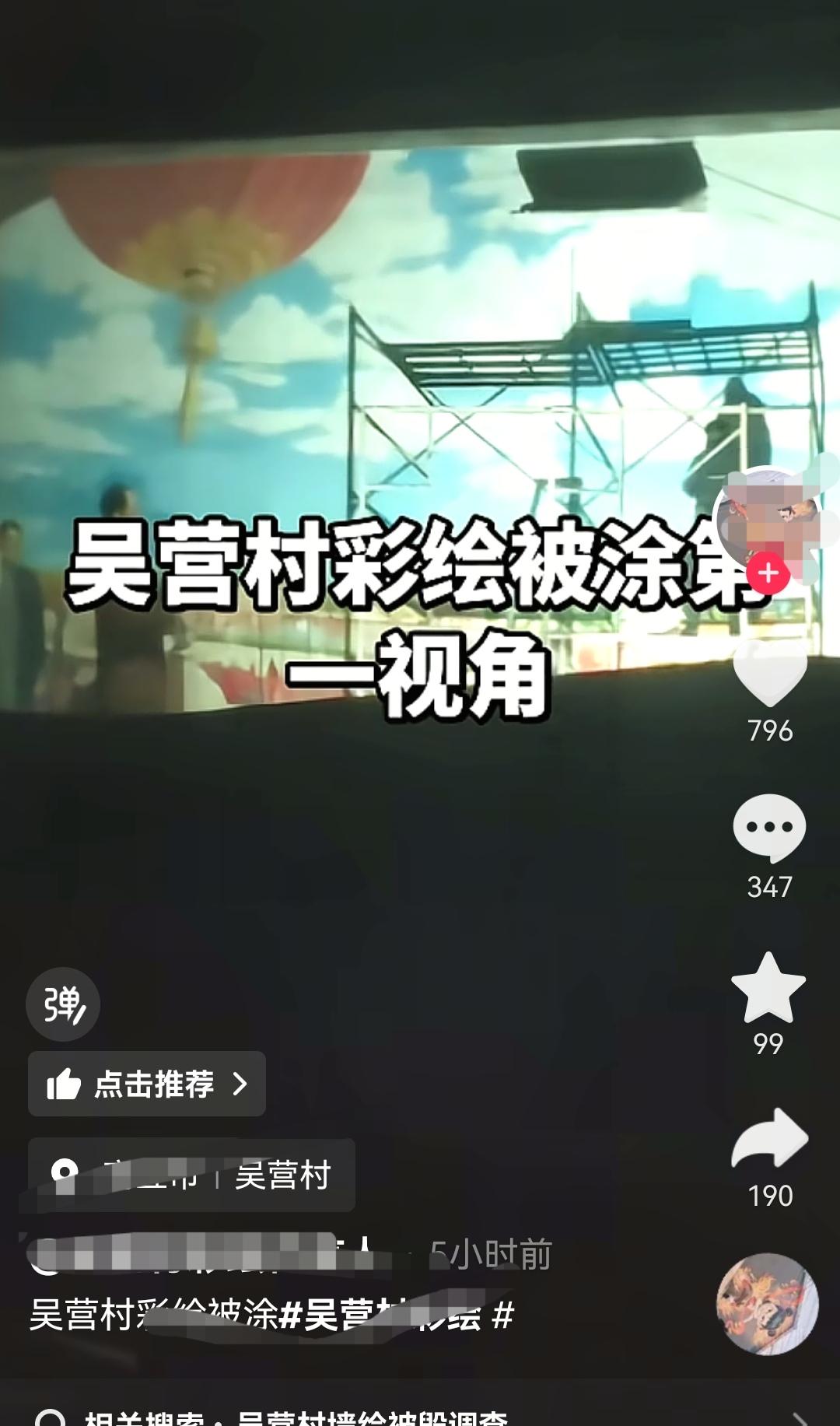吴营村彩绘被涂最新后续: 是有人找了刮腻子师傅 其实不管这个师傅的事情,人人都要为了生活,这对师傅也只是一门活,重要的问题是谁请的这个师傅,是给的什么条件?怎么说的?大晚上的让师傅来刮腻子,相信真相很快就有出来的!